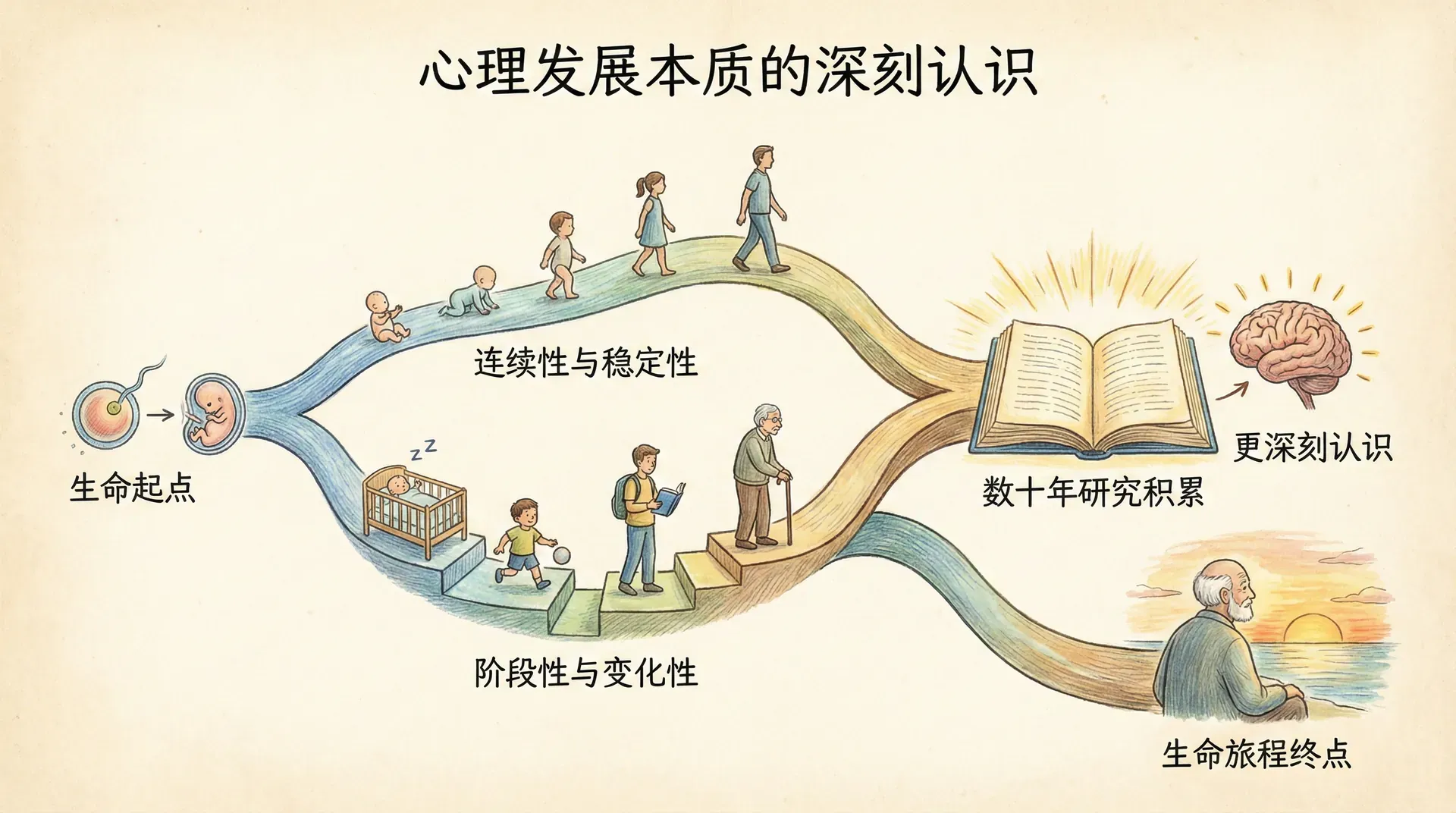 发展心理学不是要告诉人们“应该”成为什么样的人,而是帮助人们理解自身“可能”成为什么样的人。它像一面镜子,让我们更清晰地认识自己的过去、把握当下,并对未来保持开放。在这个从出生到离世的漫长旅程中,我们既是旅行者,也是自己故事的书写者。真正的成熟,不在于掌握所有的答案,而在于学会带着好奇心面对每一个未知,并在变化与稳定之间找到属于自己的平衡。