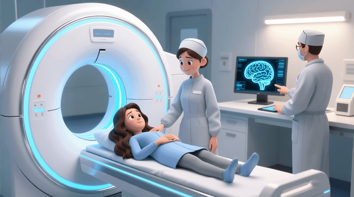 小明因为脑动脉瘤手术后需要定期做CT扫描监测病情。这些检查让她焦虑和不舒服。她不喜欢把头放在大机器里,必须长时间保持完全静止,也害怕检查的结果。