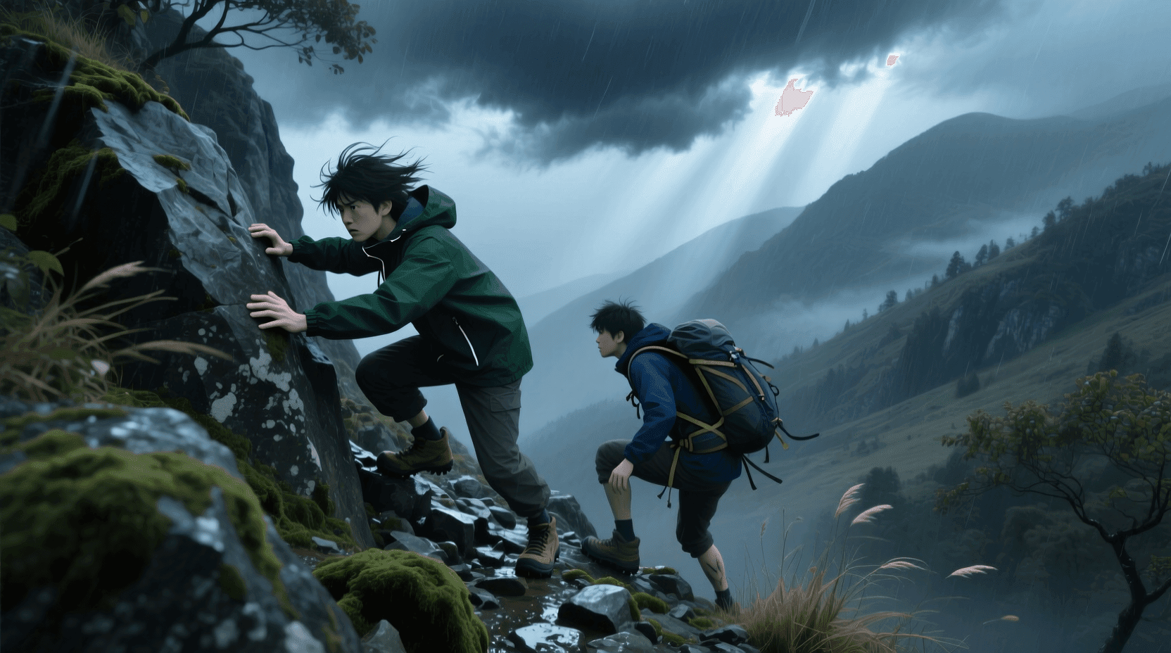 几年前,我和朋友小张在春天登山,当时他刚参加工作不久。我们背着沉重的背包攀登一座陡峭的山峰。下午时分,乌云密布,暴雨将至。我们正在攀登一段困难的峭壁,背包让攀登变得更加困难。