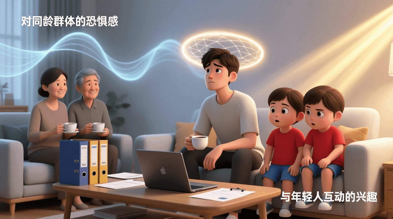 与儿童的情感一致性,如与孩子有“关系”,有与儿童相似的兴趣,觉得成年人令人恐吓。需要探索为什么他在与儿童相处时感到舒适而与成年人相处时感到焦虑,并发展成年人社交技能。