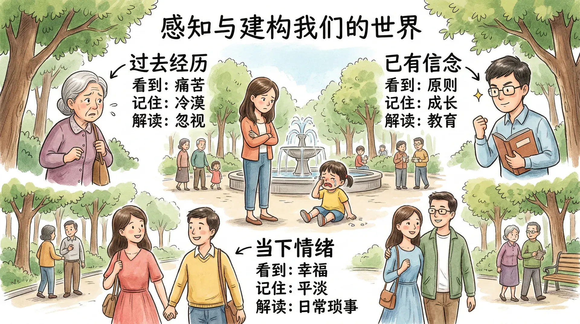 我们对周围世界的感知,并非简单地接收信息,而是一个主动的建构过程。过去的经历、当下的情绪、已有的信念,时刻都在悄悄影响着我们“看”到什么、“记住”什么,以及我们对这些信息的解读方式。
