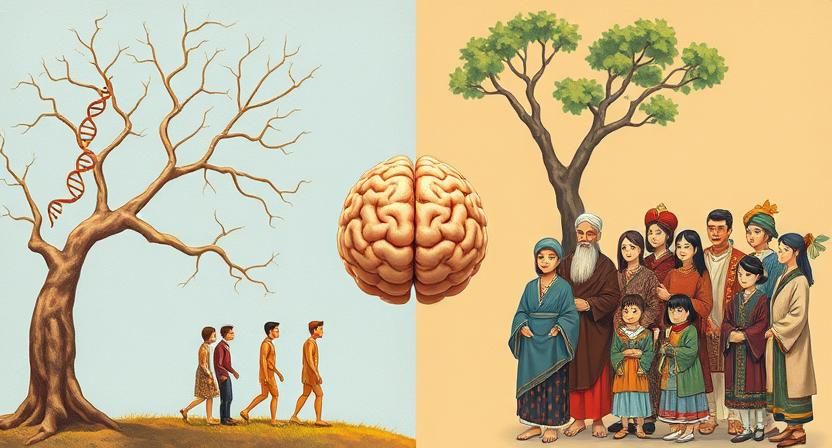 当代思想界主要有两种观点来解释人类的相似性和差异性:进化观点强调人类的血缘关系,文化观点则强调人类的多样性。几乎所有人都同意我们需要这两种观点:我们的基因塑造了适应性的大脑——这是接收文化软件的生物硬件。