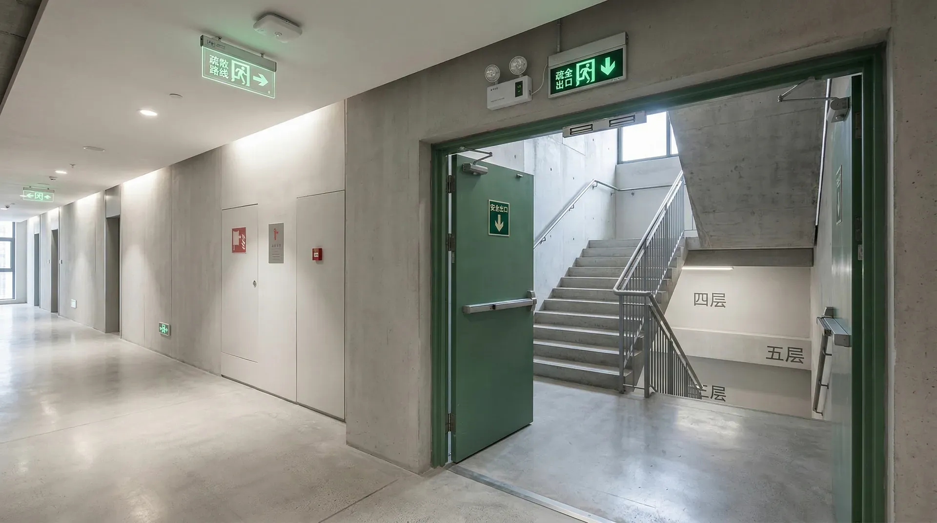 安全出口必须具备持续的防火能力,这意味着从进入楼梯间到走出建筑,整个过程都在受保护的空间内完成。