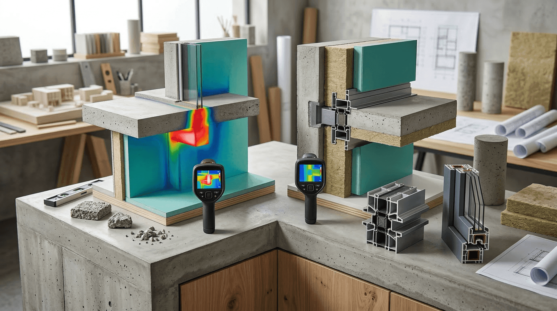 建筑围护结构通常由多种材料组成,不同材料的导热系数差异很大。当高导热材料(如混凝土、钢材)贯穿保温层时,就会形成热桥。以一个典型的钢筋混凝土结构外墙为例,混凝土梁的导热系数约为1.74 W/(m·K),而外墙保温材料(如挤塑聚苯板)的导热系数仅为0.03 W/(m·K),两者相差近60倍。