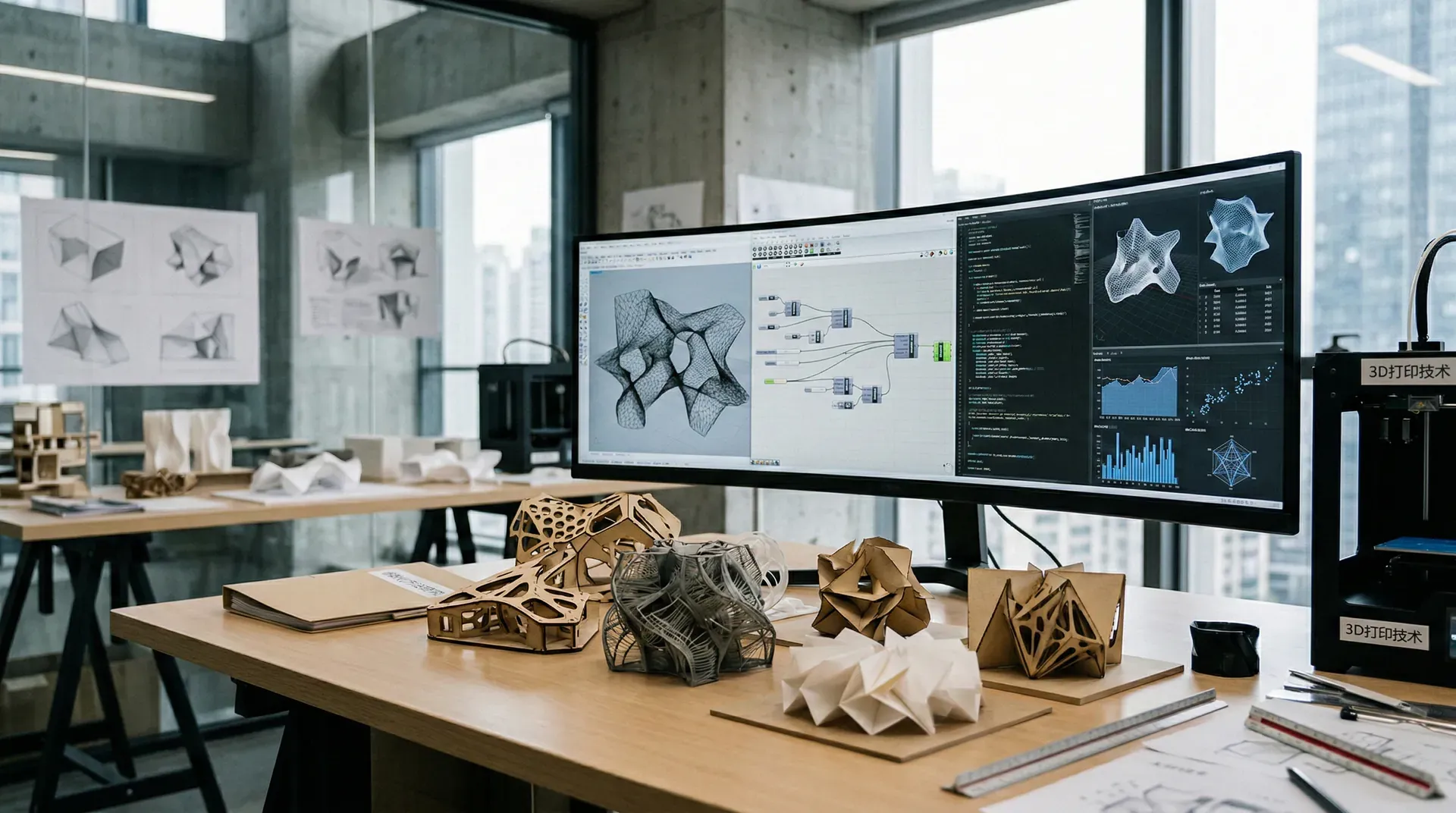 除了从概念出发,我们也可以通过实验来发现形式。用石膏、蜡、黏土等材料制作模型,在动手的过程中往往会发现意想不到的可能性。或者用计算机软件进行参数化设计,通过调整参数来探索形式的变化。