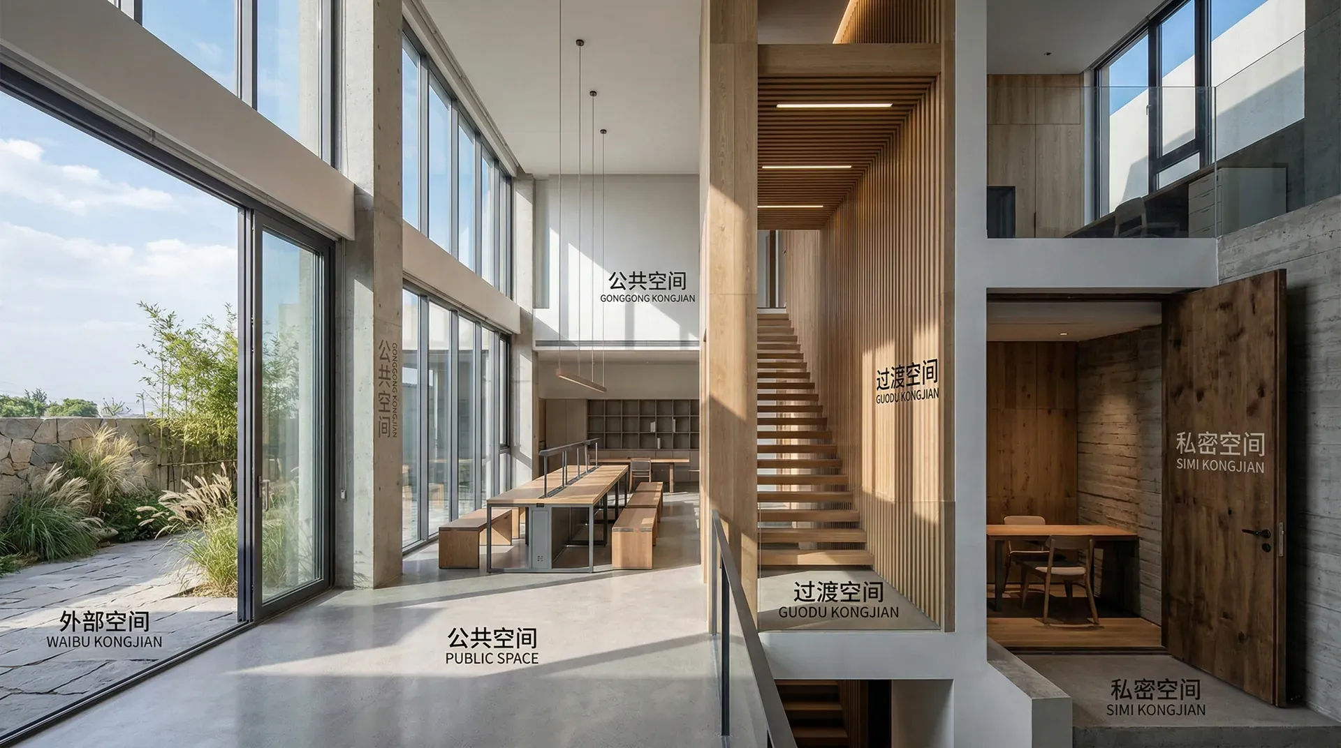空间可以根据不同的维度进行分类,例如:按功能用途、公共性与私密性、使用时长、地域特征等。理解这些分类,有助于我们更有系统地认识空间的多样性及其对设计的影响。