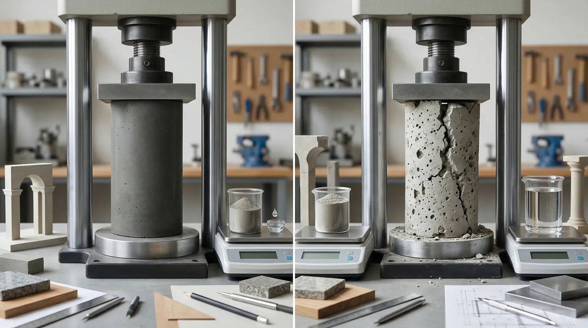 混凝土拌合物浇筑后,在适宜温湿条件下逐步硬化形成坚硬固体。其力学性能指标主要有抗压强度、抗拉强度和弹性模量等。