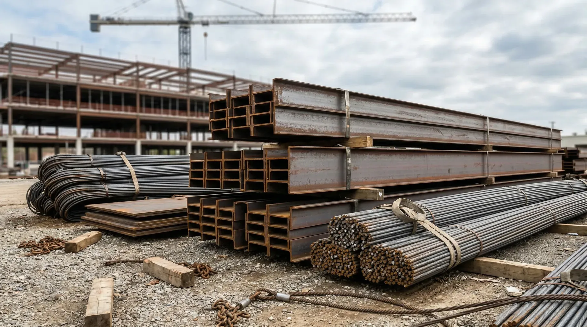 从用途看,建筑钢材分结构钢和钢筋两大类。结构钢用于建筑框架、桁架、网架等承重构件,形式有型钢(如工字钢、槽钢、角钢)、钢板和钢管等。钢筋则主要用于钢筋混凝土结构中承受拉力。