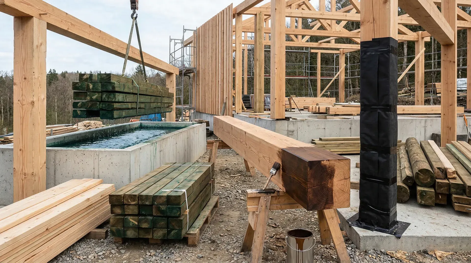 防腐处理是通过化学药剂浸入木材,抑制或杀死腐朽菌的方法。常用的防腐剂包括水溶性防腐剂(如铜铬砷CCA、铜唑ACQ)、油溶性防腐剂(如煤焦油)和油类防腐剂(如木焦油)。
