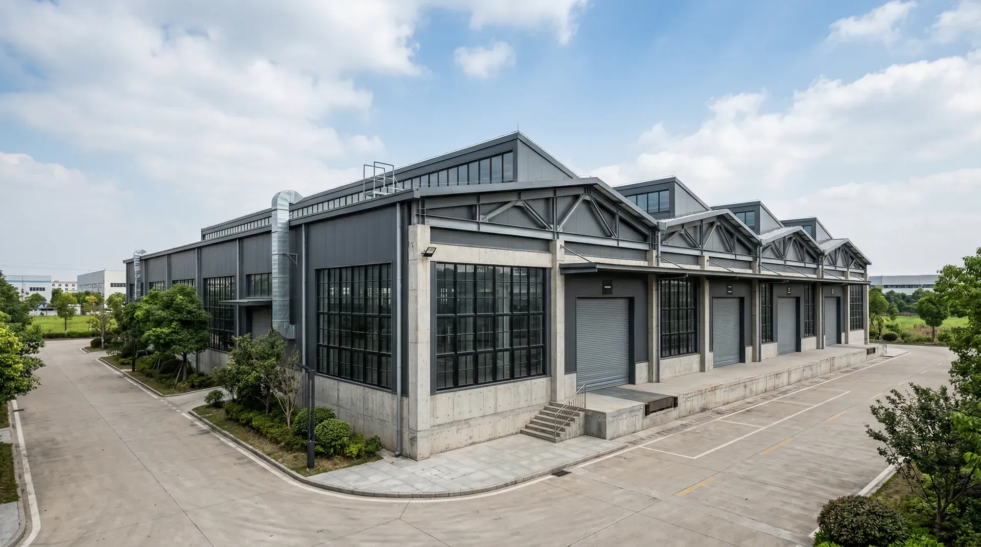 单层工业厂房通常对空间开阔性、跨度宽大和局部重载提出较高要求,以满足大型生产设备布置、物流通道、吊车运行等需要。在结构类型选择上,一般优先采用门式刚架或排架结构:门式刚架适用于大跨度、轻型厂房,布置灵活、施工快捷;排架结构则更适合承受重型荷载或配备多台吊车的大型车间,具备良好的力学性能和扩展能力。这些结构体系既能保证厂区空间畅通无柱,又能有效承受生产中的各种水平和竖向荷载。