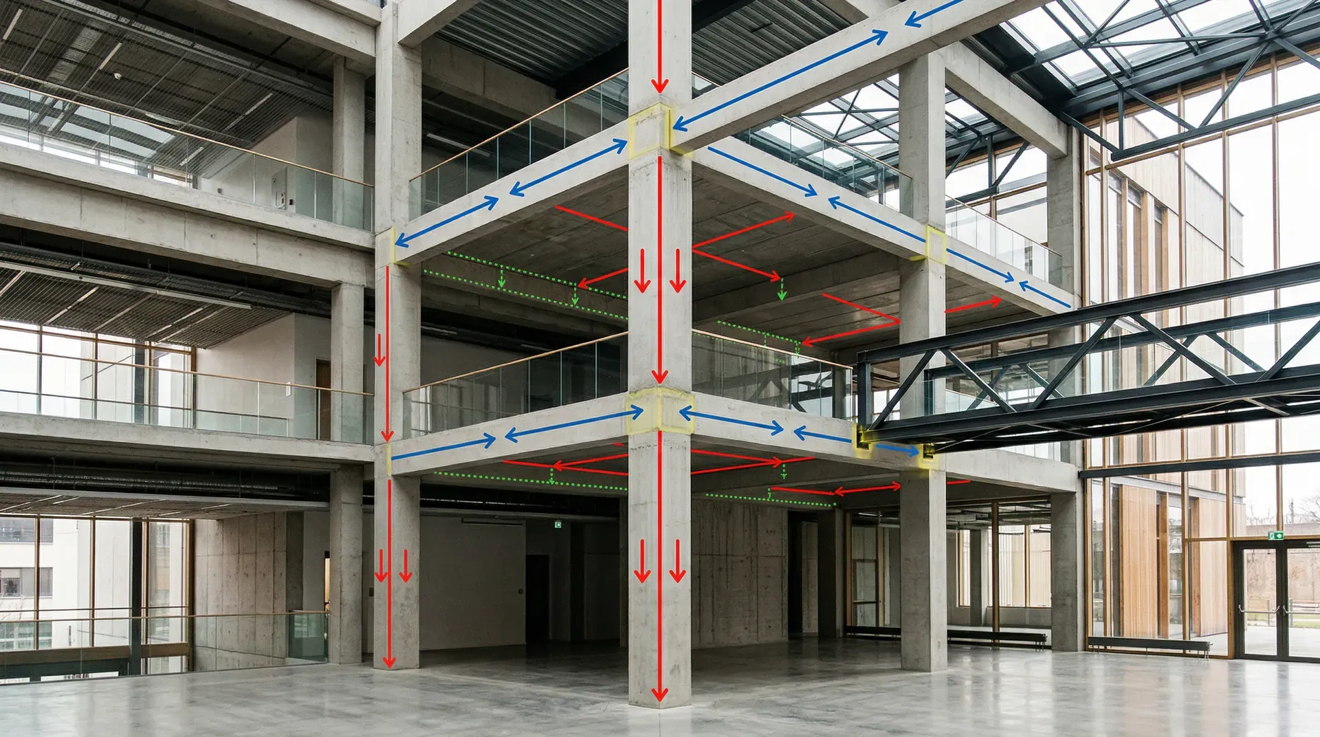荷载传递路径应尽可能做到直接、少中转,使各层荷载清晰明确地逐级传递至基础。设计时应避免形成复杂的荷载“弯路”或大跨度的转换层结构,减少因局部受力不明所引发的结构病害,从而提升整体的安全性与可控性。