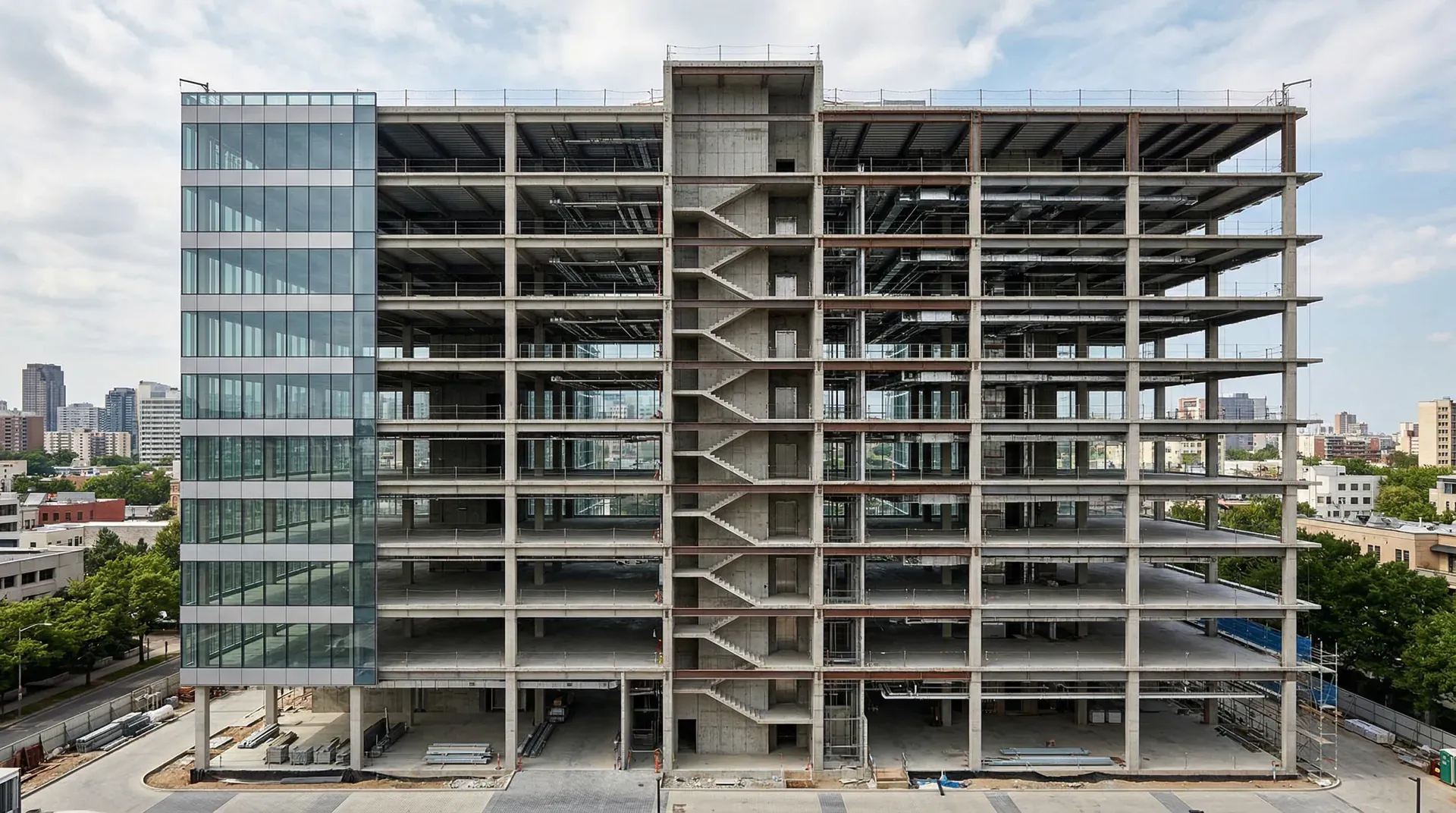 多层办公楼一般指4~9层的中高层办公建筑。这类建筑对空间开敞性、房间灵活分隔以及后期改造的适应性要求较高,因此结构的选型与方案布置至关重要。框架-剪力墙结构体系凭借其“安全、灵活、经济”的综合优势,是现代多层办公楼的常用方案之一。