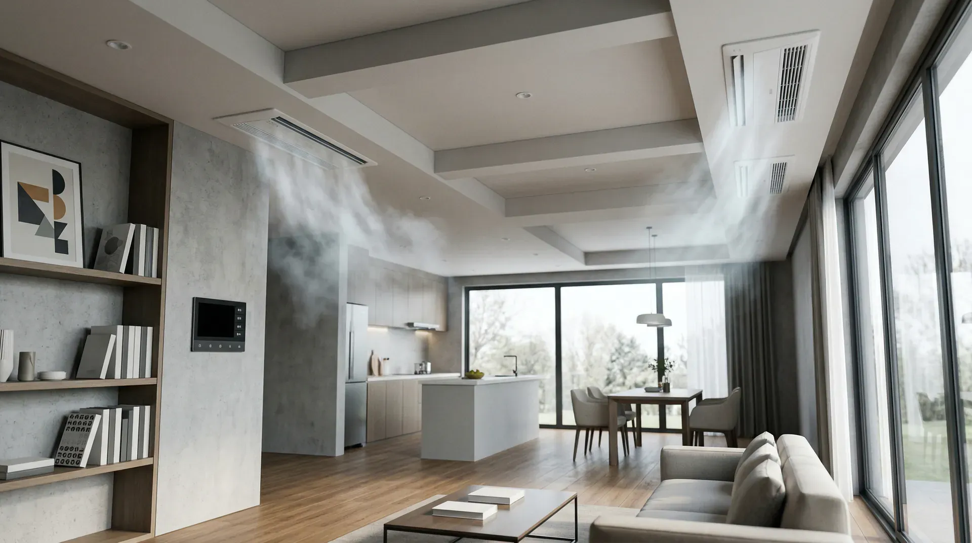 中央空调采用一台或多台主机为多个房间提供冷暖服务,室内机隐藏在吊顶内,只露出送回风口,空间整体性好。多联机系统(俗称“一拖多”)允许不同房间独立控制温度,运行灵活。风管机系统成本相对较低,但所有房间同开同关。水系统中央空调舒适度高,温度均匀,适合大型公建和高档住宅。