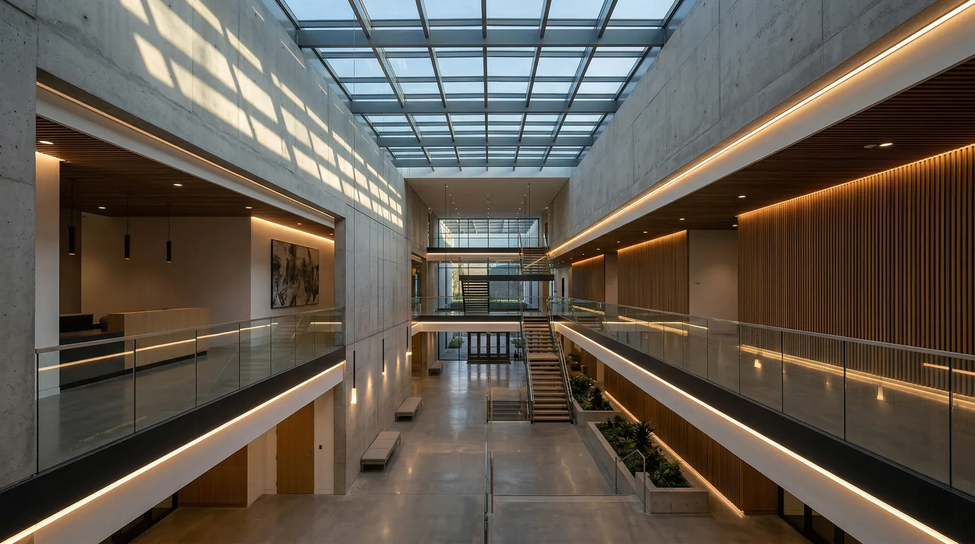 动态日光管理是高品质空间照明不可或缺的环节。通过自动遮阳、智能调光玻璃、电动百叶等设备,既确保采光又防眩光、抑制过热。例如: