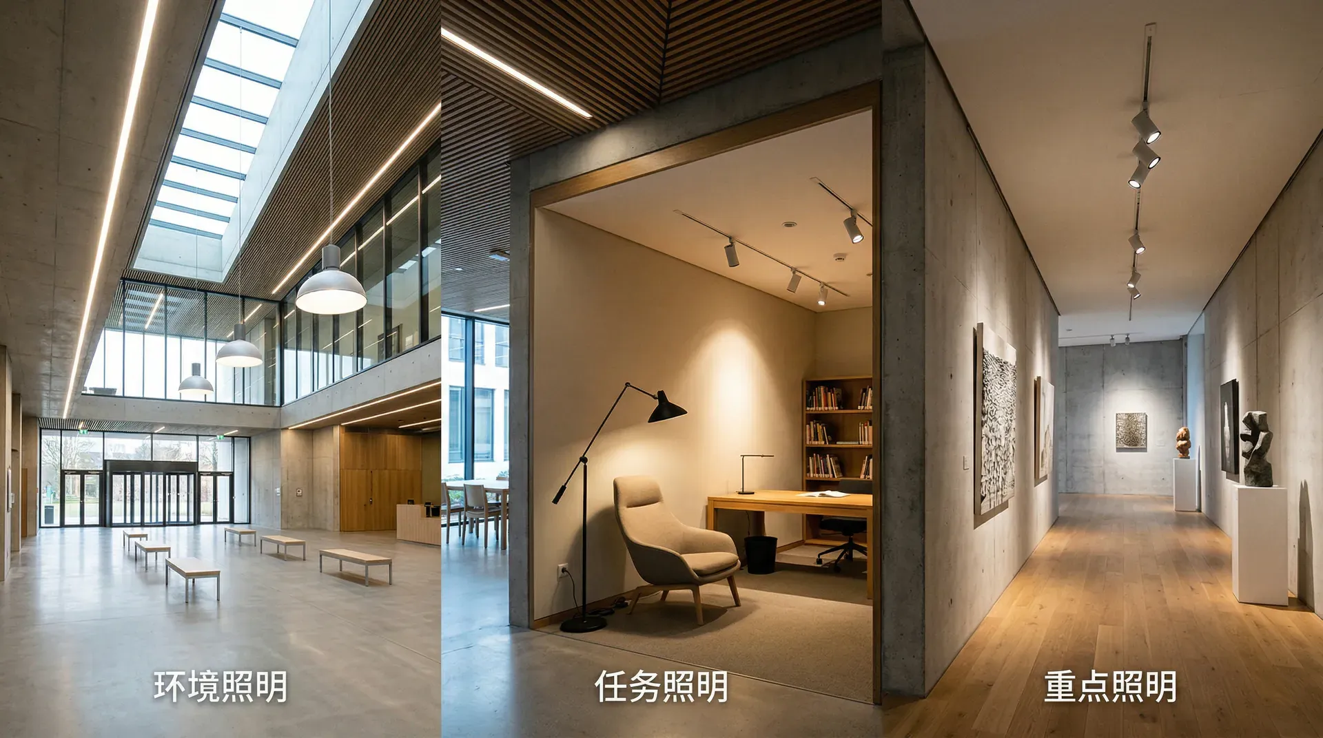 每种空间类型都有其独特的照明标准和设计重点。合理的照明设计不仅能提升空间的整体品质,还能促进空间功能的实现,满足不同人群的体验需求。例如,合理分区与分控可以根据功能使用强化空间层次,采用可调亮度和色温的灯具则赋予空间更高的适用性和舒适度。同时,结合节能与智能化控制技术,现代照明设计也在持续推动建筑能效的提升和可持续发展。综上所述,科学、以人为本的照明设计是提升空间价值和优化用户体验不可或缺的重要环节。