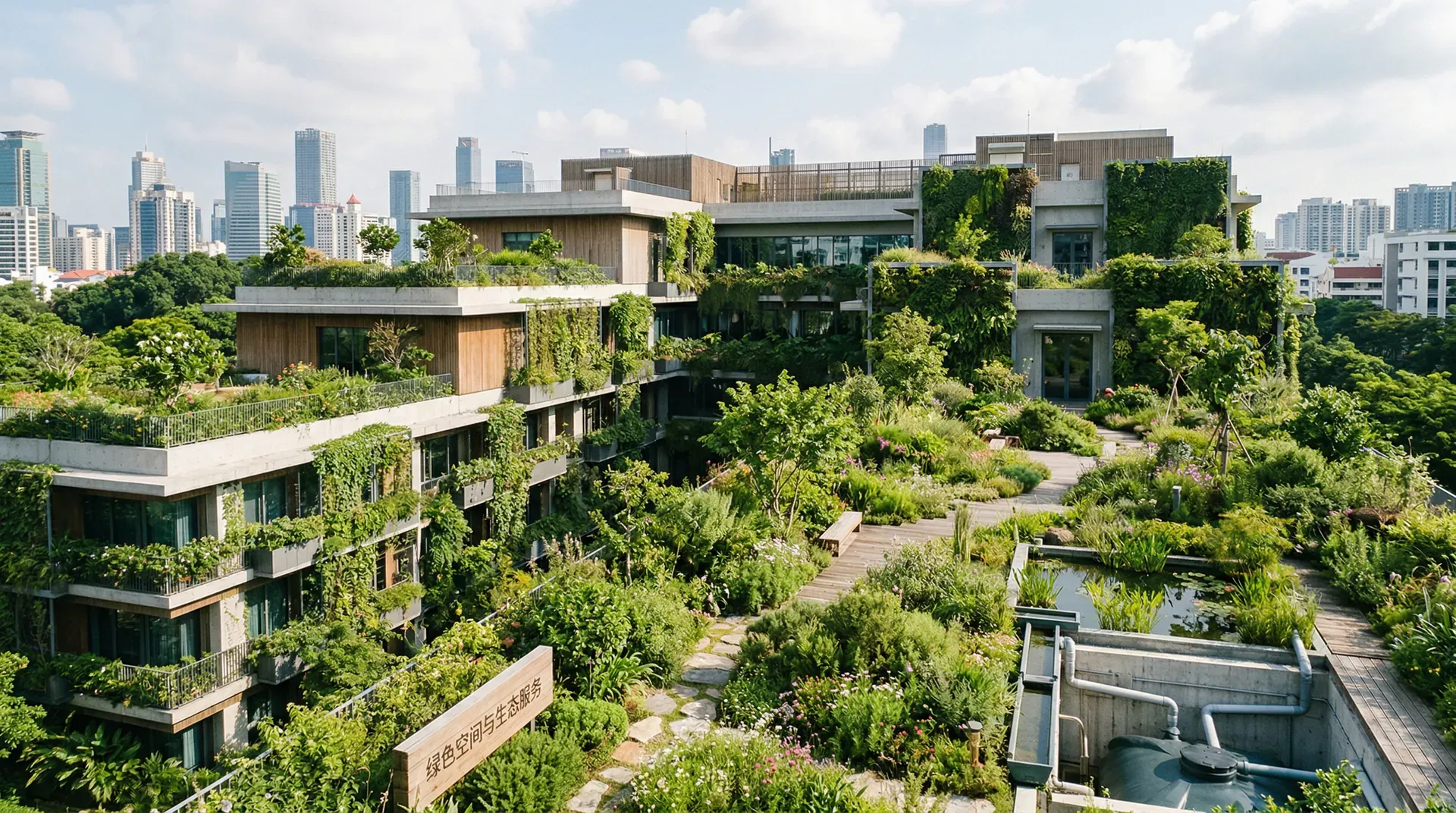 除了上述常见类型,近年城市建设密度不断提高,不少高层住宅区和商业综合体选择在屋顶、建筑退台、裙房屋面等空间增加绿量。比如在某超大城市中心城区,过去二十年地面绿地受到挤压,设计师则通过构建“地面—退台—屋顶”三维绿化系统,使高密度环境中保持可观的绿色空间,为居民提供立体式的亲自然体验。