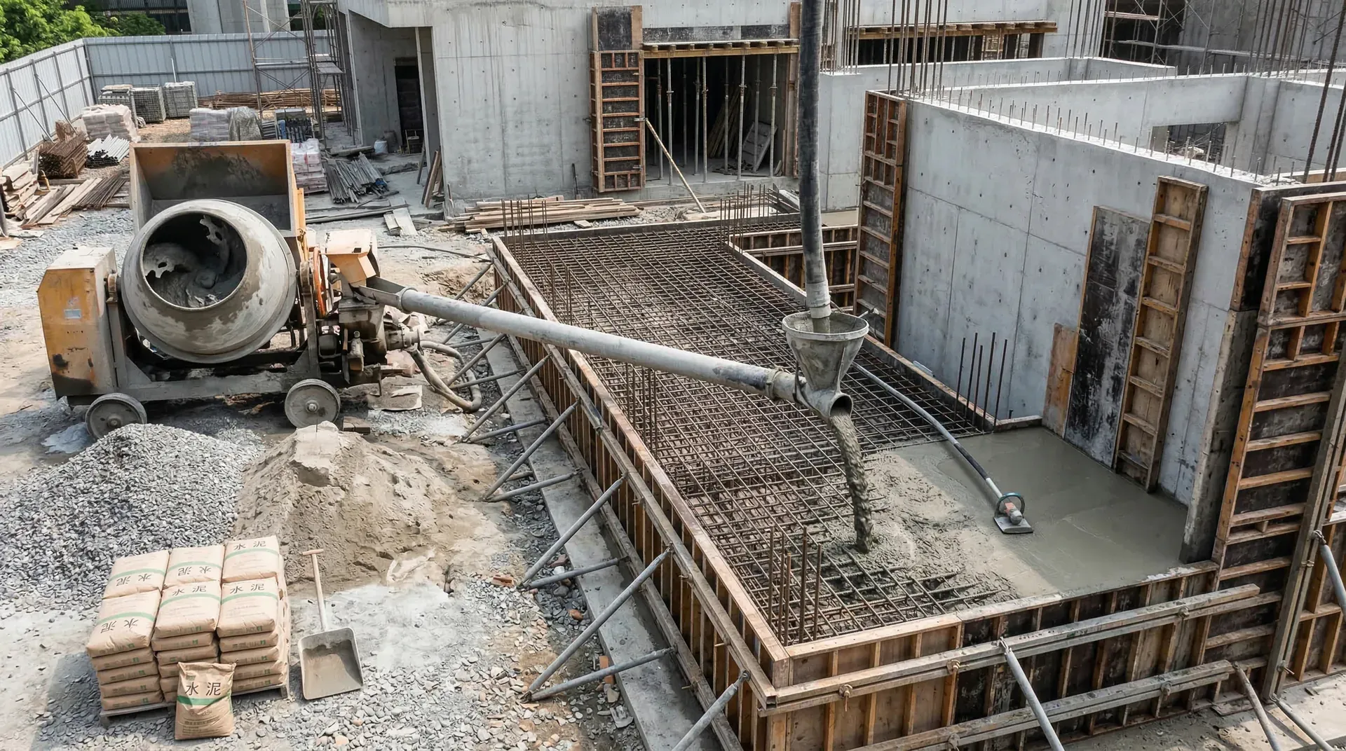 混凝土是一种人造石材,通常由水泥、骨料(砂和石)、水、外加剂等通过科学配比和均匀搅拌而成。每种组分在混凝土中的地位和作用都十分关键。