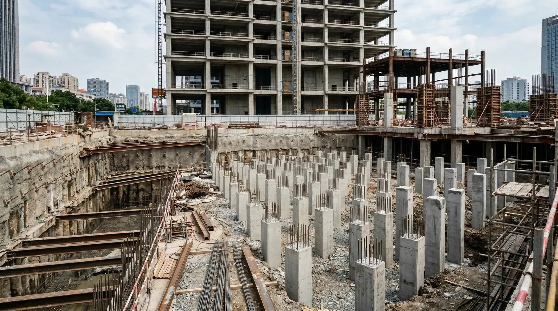 桩基础按照施工方法可以分为预制桩和灌注桩两大类。预制桩在工厂或现场预制成型,运到工地后通过锤击或静压的方法打入地下。这种桩施工速度快,质量容易控制。但在城市建筑密集区,打桩产生的震动和噪音是一个需要考虑的问题。
