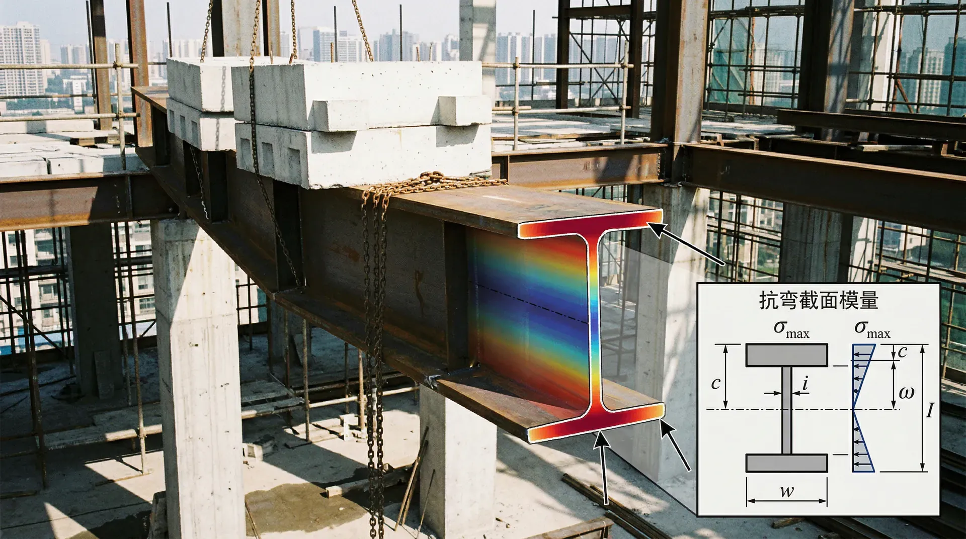 其中为截面宽度,为截面高度。可见,增加截面高度对提高抗弯能力的效果非常显著,因为惯性矩与高度的三次方成正比。这就是为什么工字钢要把大部分材料布置在远离中性轴的翼缘处,而不是集中在腹板上。
