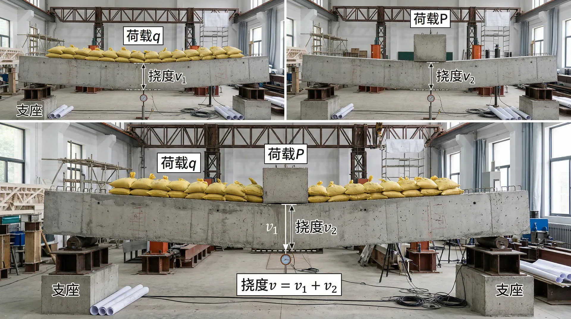 积分法虽然是求解梁变形的基本方法,但当载荷较为复杂时,积分过程会比较繁琐。叠加法是一种更为简便实用的方法,特别适合于承受多个载荷作用的梁。叠加法的理论基础是材料力学的线性关系,在小变形和弹性范围内,不同载荷产生的变形可以独立计算后叠加。