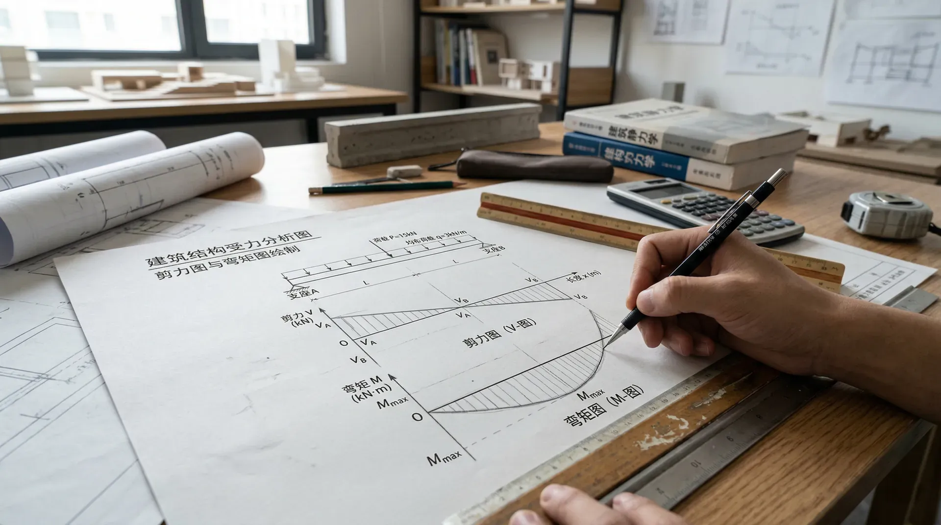通过对照剪力图与弯矩图,可以把握内力沿梁的变化趋势。剪力在出现零值的位置往往是弯矩出现极值的位置,这是构造和强度校核的关键。剪力图和弯矩图不仅帮助工程师判断危险位置与大内力区段,也是梁强度设计、支座设计和裂缝控制等工程决策的重要依据。掌握其绘制与判读,是结构分析的核心技能之一。