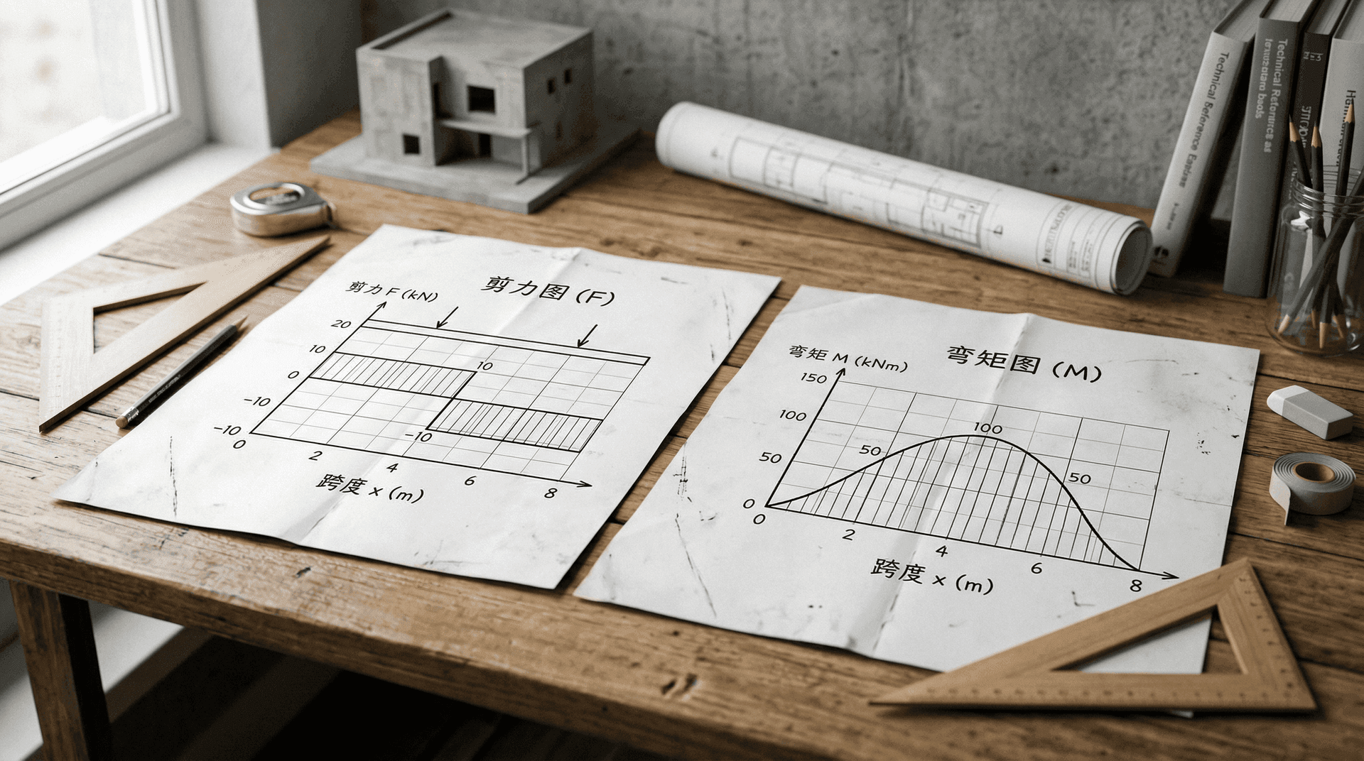 剪力图和弯矩图是将剪力方程和弯矩方程以图形方式表达出来的工具。通过图形可以直观地看出梁上各截面内力的大小和变化规律,快速找出危险截面的位置。这两种图是梁设计中必不可少的工具。