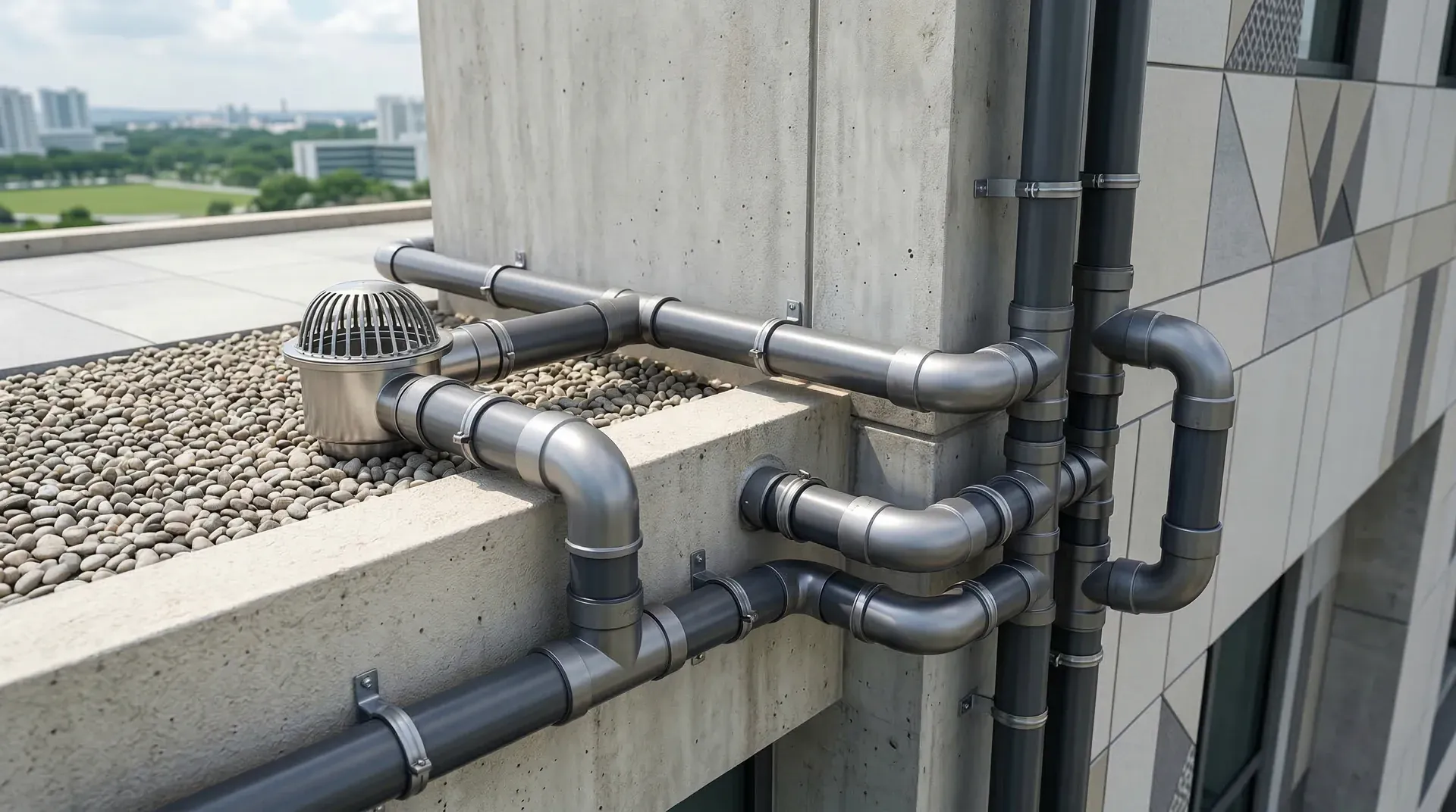 雨水排水需采用独立系统,严禁与污废水混流。例如,广州某大型商业综合体屋顶面积达2万平方米,采用虹吸式雨水系统,仅用4根立管即满足排放需求,比传统重力流系统管道数量减少60%。