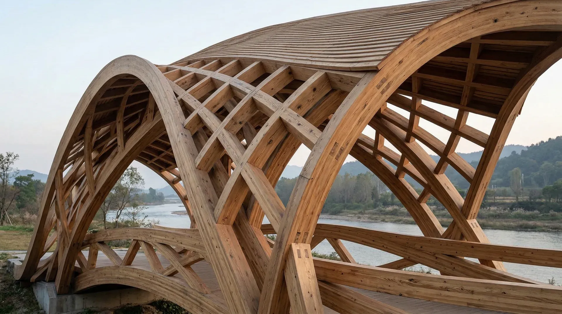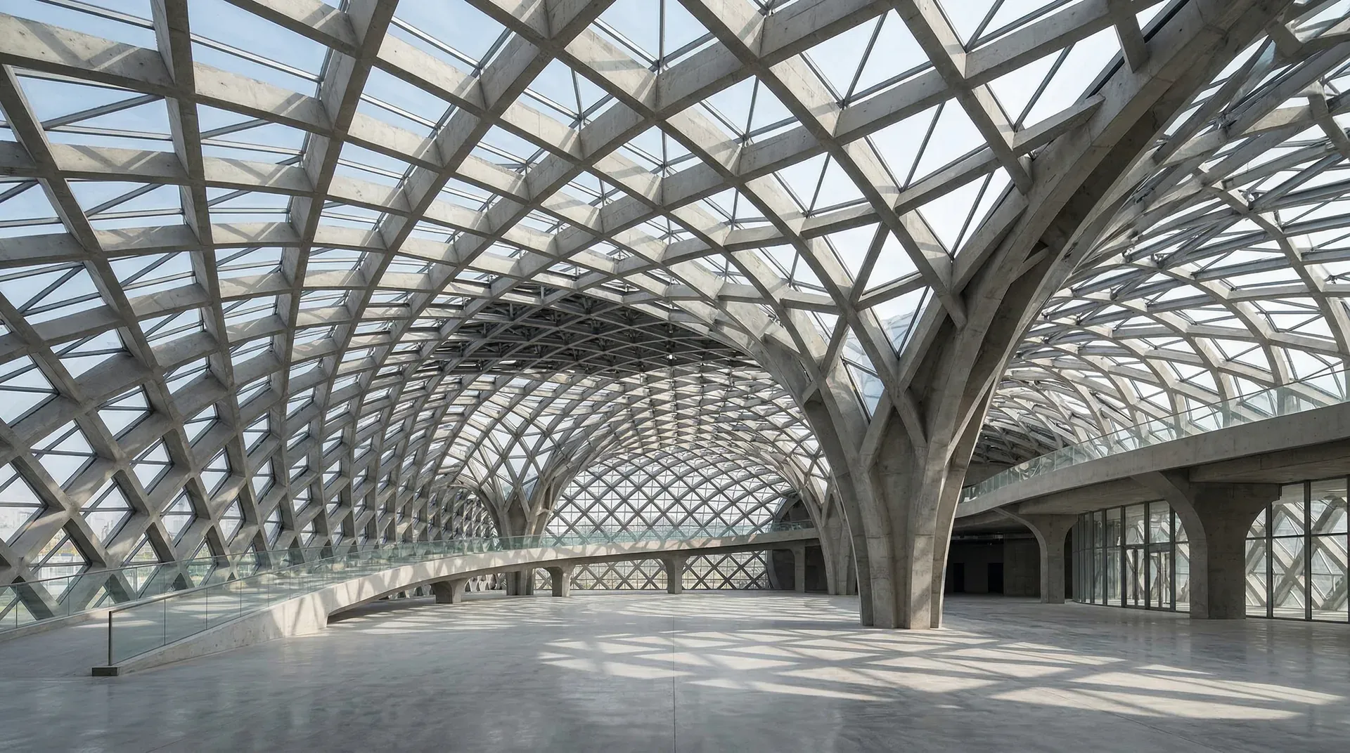 壳体结构以曲面形式承担荷载,材料可以是钢筋混凝土、钢材或其他复合材料。壳体结构的曲面形态使得建筑呈现出流动、有机的特质。