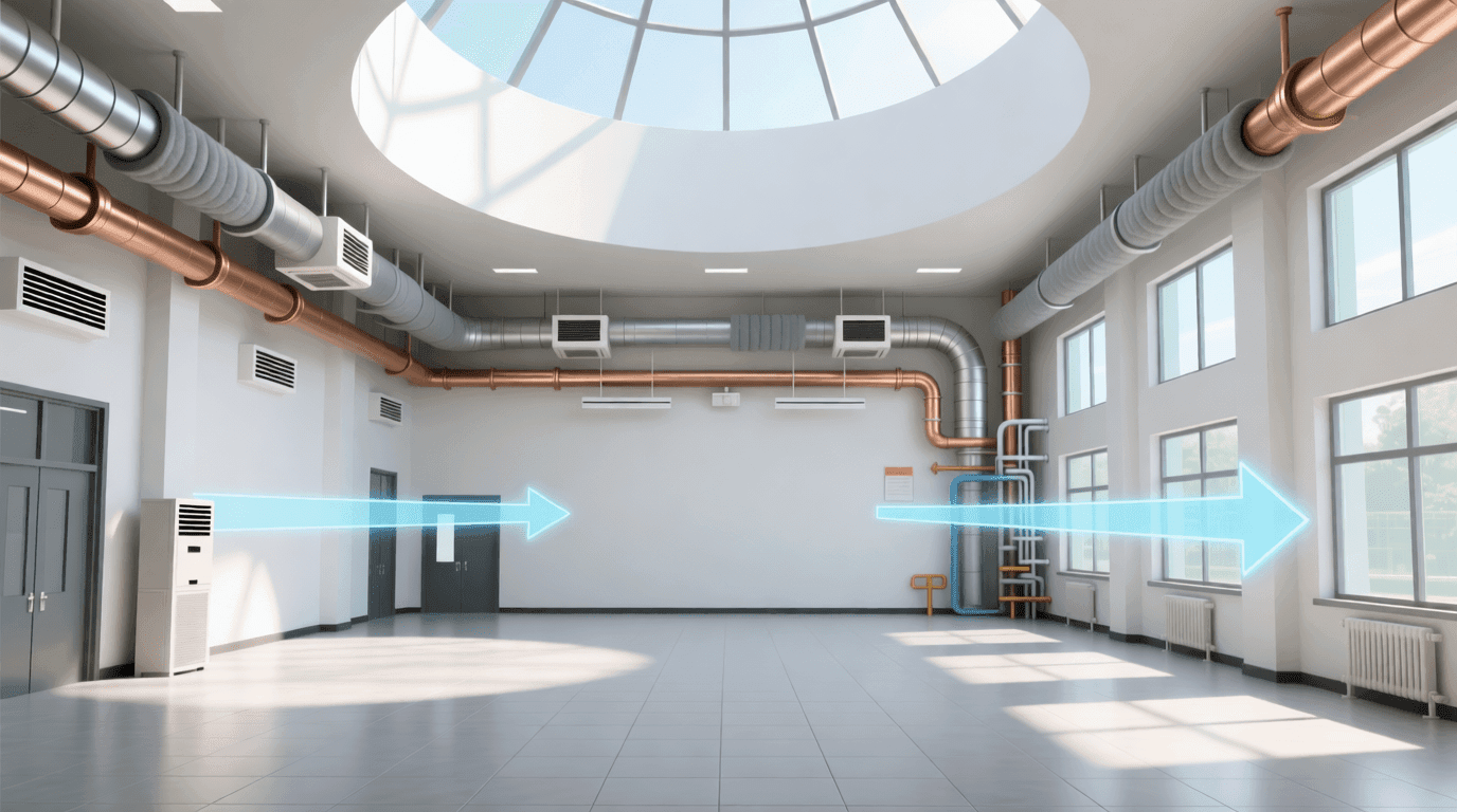 空调系统形式的选择需要根据建筑类型、规模、使用特点和气候条件综合确定。全空气系统通过集中处理的空气满足室内冷热需求,适合大空间、人员密度高、新风需求大的场所。这种系统可以方便地进行热回收,空气品质控制效果好,但风管占用的建筑空间较大,输送能耗也相对较高。