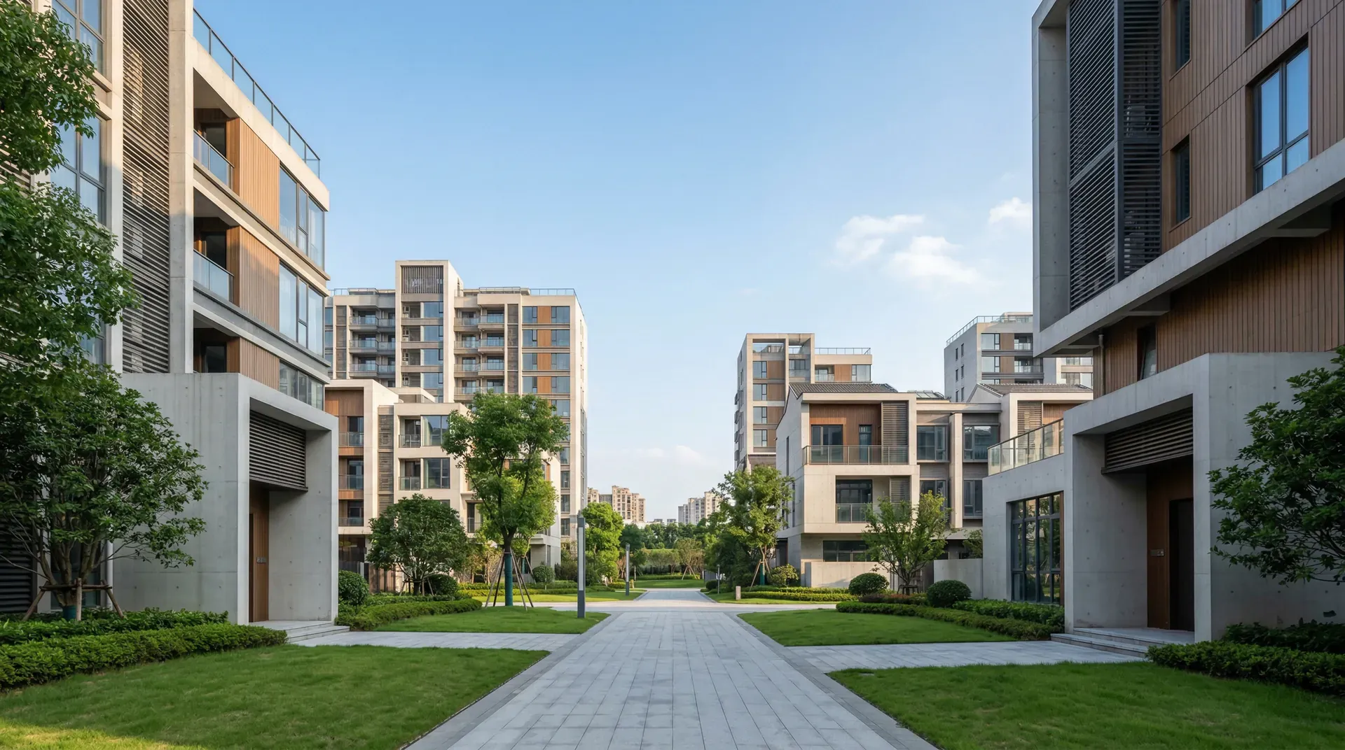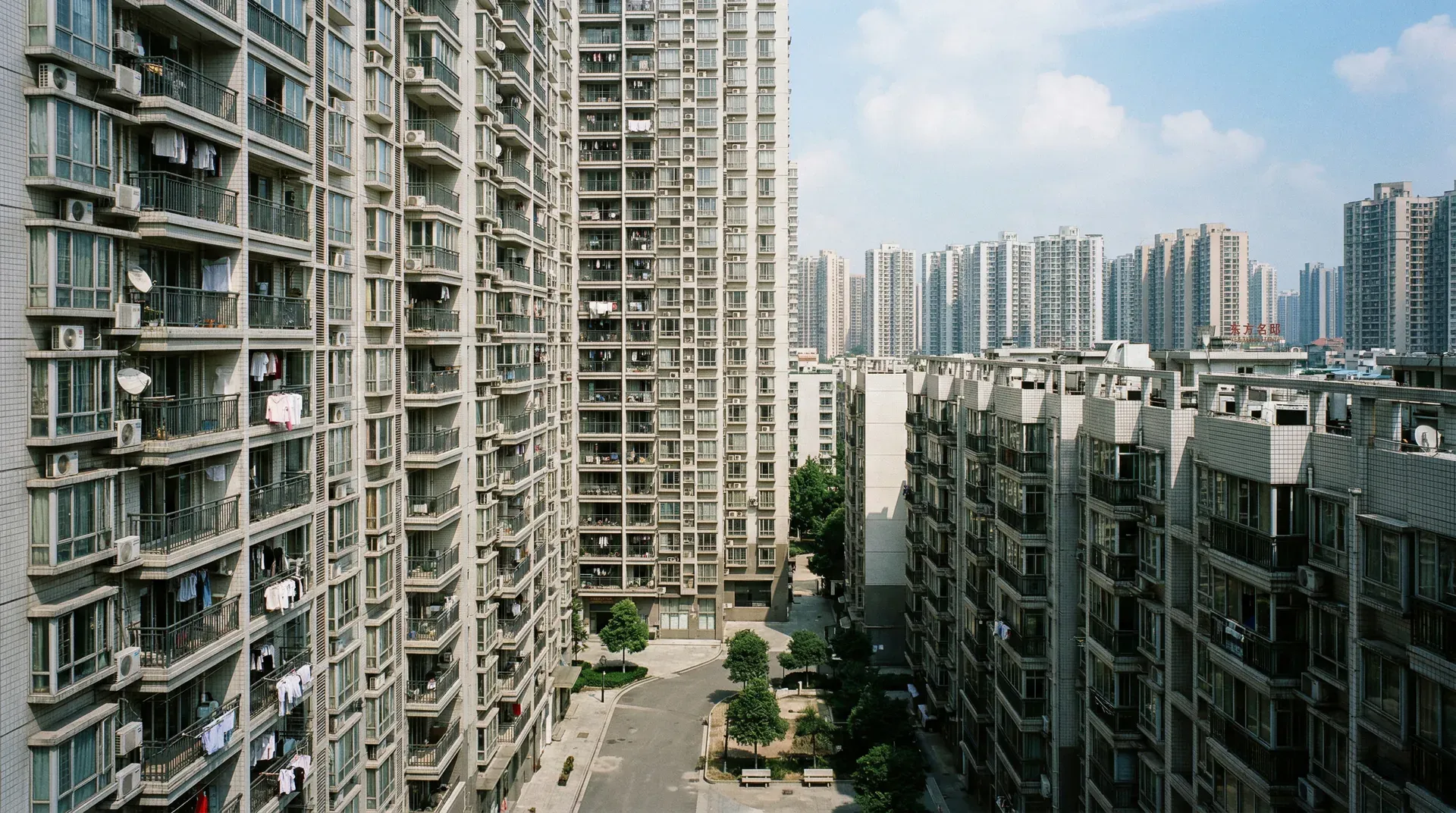 中国商品房的典型形态,是在开发商主导下大批量生产的标准化住宅产品。这类住宅在形态上高度相似:板式高层或塔楼成组排列,容积率通常在2.0至4.0之间,配套地下车库、围墙大门和物业管理,形成一个个封闭的住宅小区。