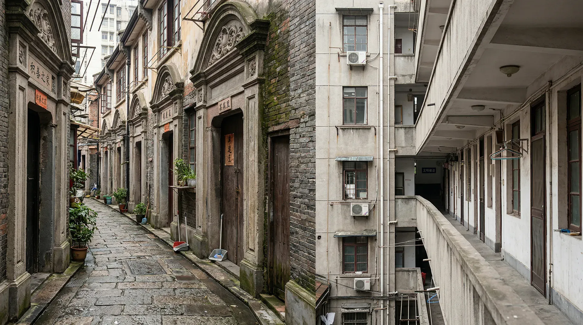 在上海、广州等南方城市,19世纪末到20世纪初广泛出现了“石库门里弄”住宅。房屋沿弄堂两侧布置,空间紧凑,外部公共空间成为邻里交往的重要场所。这种类型强调居住的社会性和空间共享,但私密性较差、采光通风有限,且附属配套设施不足。类似地,在北方的北京,则有胡同四合院的居住形态,注重院落空间与家庭网络的延续。