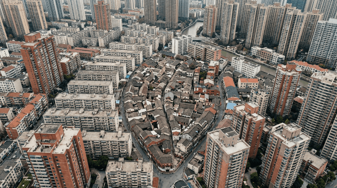 城市肌理指的是城市中建筑、街道、空地、公共空间等各要素在平面上交织出的纹理、节奏与密度。从上方俯瞰城市,你会看到或疏或密、深浅不一的建筑斑块、巷道与绿地,就像一张被织就的“城市布匹”。比如: