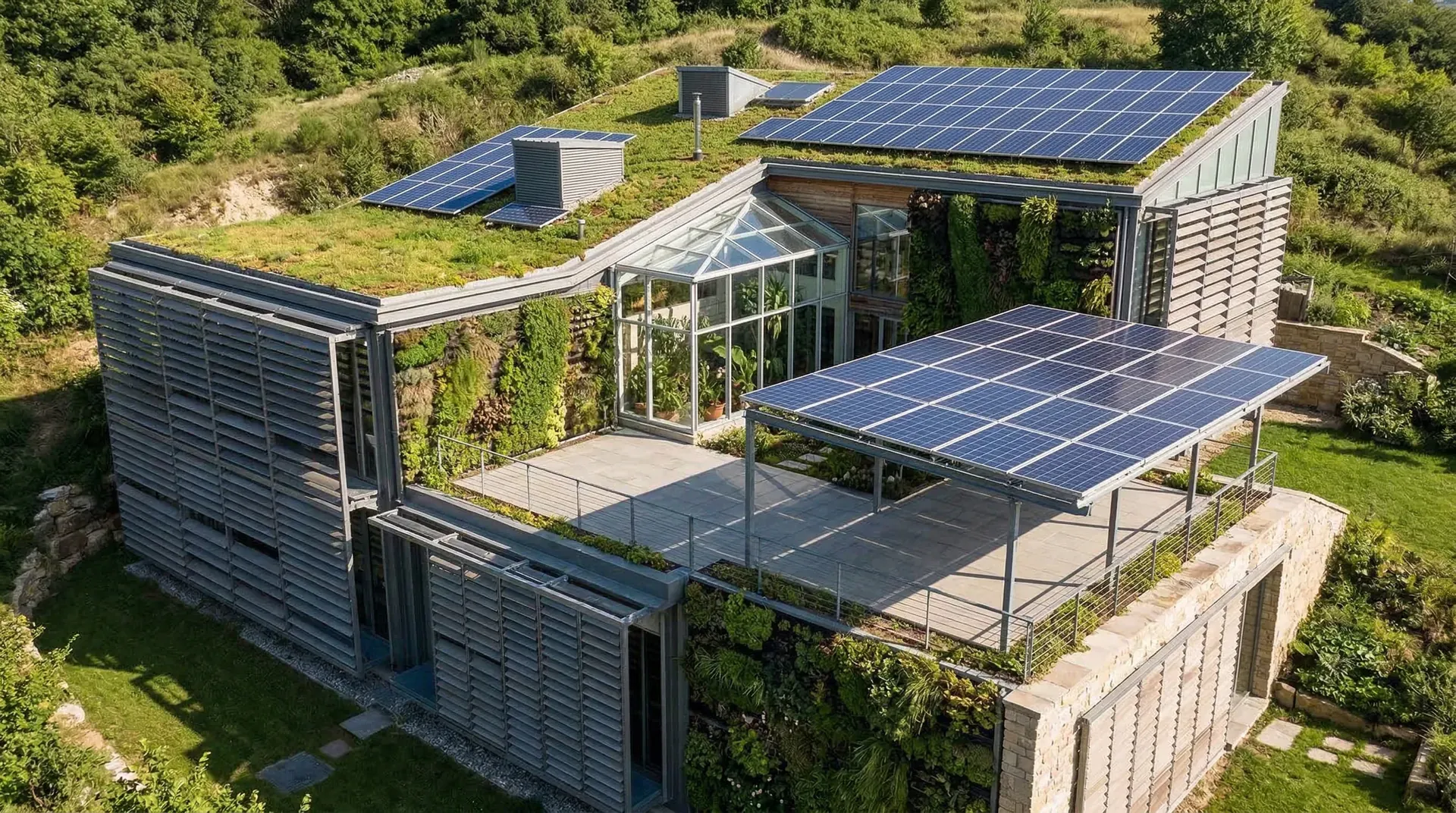 现代设计也采用多样策略促进两者协同:屋顶花园提升空间利用与绿地率,增强隔热保温;垂直绿化将自然带入立面,模糊建筑与环境的界限;下沉或内庭院将绿意引入室内,赋予场所以自然渗透的氛围;坡屋顶绿化则让建筑融于地形,屋顶成为可行走的景观地表。