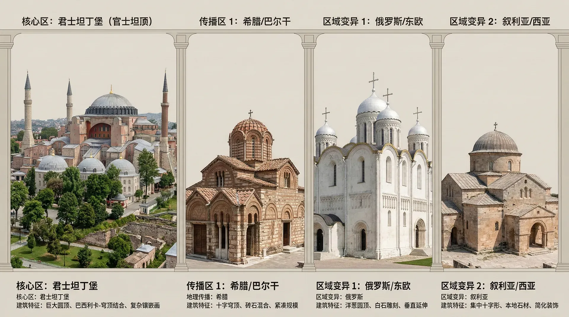 公元395年罗马帝国正式分裂后,东部地区的建筑开始脱离西方传统,逐步形成独特面貌。这种演变并非突然发生,而是经历了两个清晰的发展阶段。