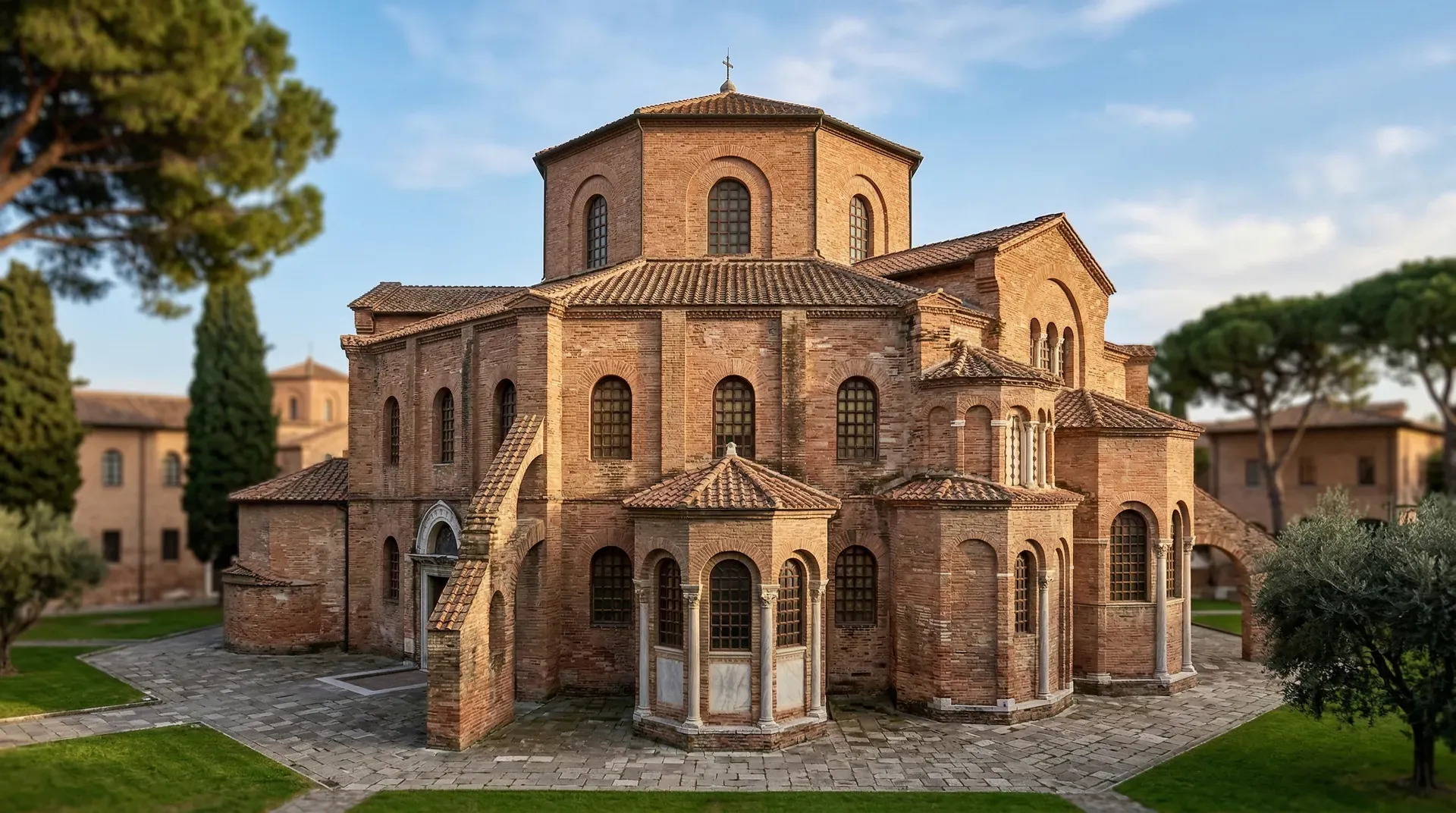 拜占庭建筑随着东罗马帝国的影响力向外扩散,在不同地区产生了本土化的变体。意大利的拉文纳作为帝国在西方的总督驻地,最早接受这种风格。圣维塔莱教堂便是典型案例,虽然未采用严格的帆拱系统,但其八角形平面、层叠的拱券、墙面的马赛克装饰都明显来自东方。