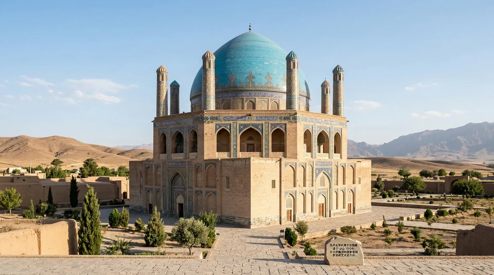 苏丹尼耶的奥尔杰图墓(14世纪)展现了波斯建筑的典型特征。这座八角形建筑高达50米,穹顶直径25米,外墙包裹着复杂的釉砖图案。墓室内部的穹顶装饰更为精彩,几何纹样、花卉图案和书法以不同的色彩层次铺展开来,光线透过高窗投射进来,整个空间笼罩在蓝绿色的梦幻氛围中。
