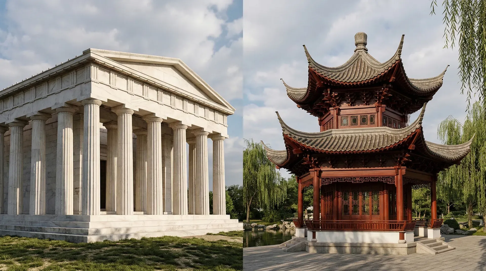 将古希腊建筑与中国古代建筑并置观察,可以发现两个伟大文明在建筑上的不同选择。这些差异不仅是技术和材料的差异,更反映了不同的哲学观念和社会结构。