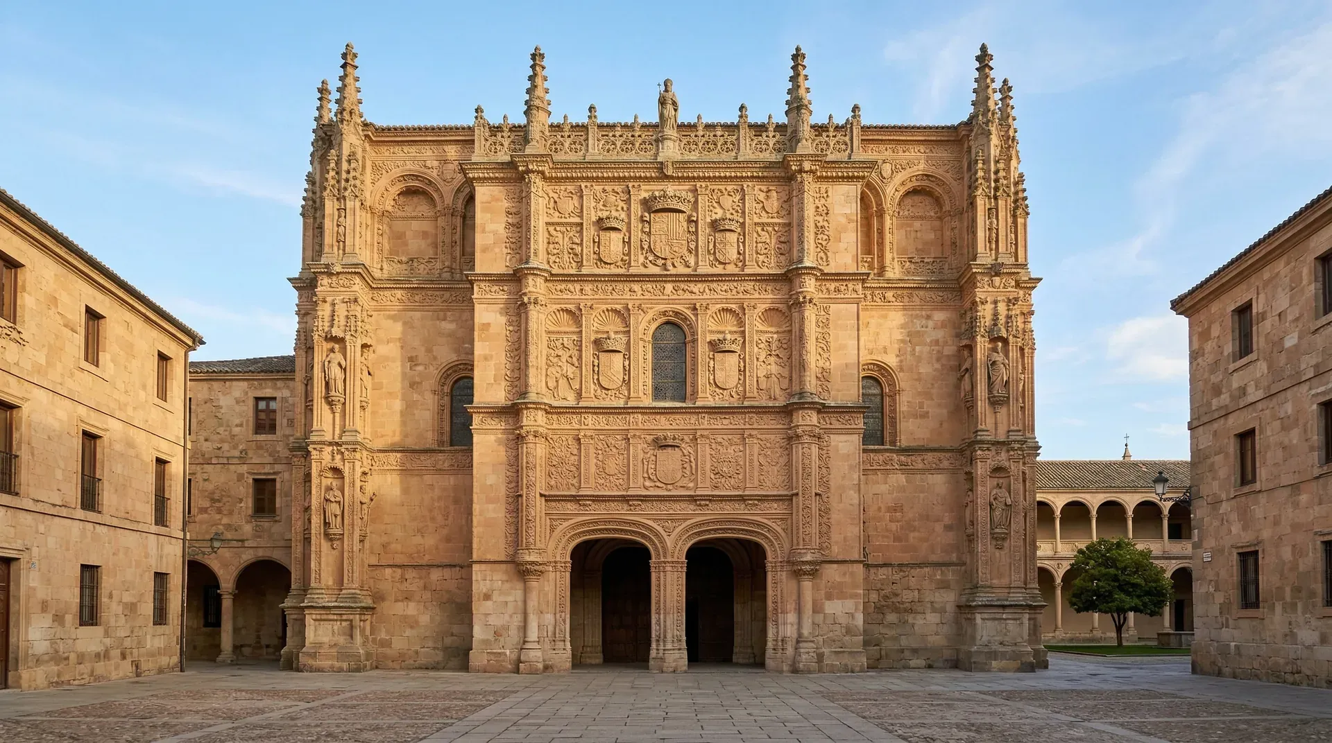 15世纪末的西班牙经历了剧烈的社会变革。内部各王国的统一、海外探险的成功和军事胜利带来了财富和自信。建筑开始反映这种新气象,但方式独特:设计者将新的装饰元素与传统的哥特式结构结合,创造出一种极其精致的风格,被称为“银匠风格”,因为其细腻程度堪比金银器的雕刻。