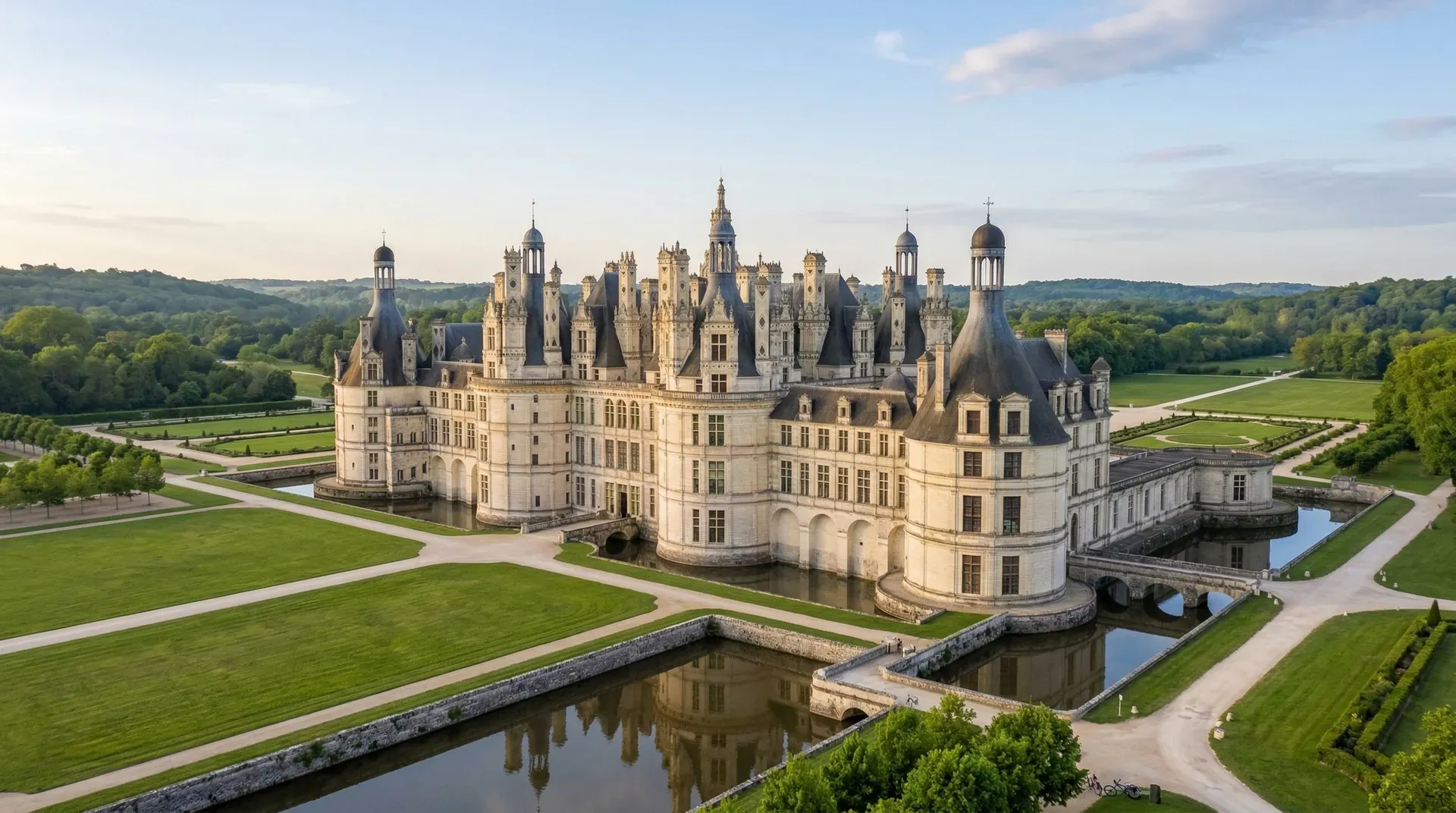卢瓦尔河谷的城堡群是这个时期的代表作。舍农索城堡横跨在谢尔河上,拱桥与建筑融为一体,倒影映在水中,构成一幅美丽的画面。香波堡更是宏伟,整个建筑群由440个房间组成,屋顶上有365个烟囱和尖塔,据说每天可以在不同的房间住,一年不重复。