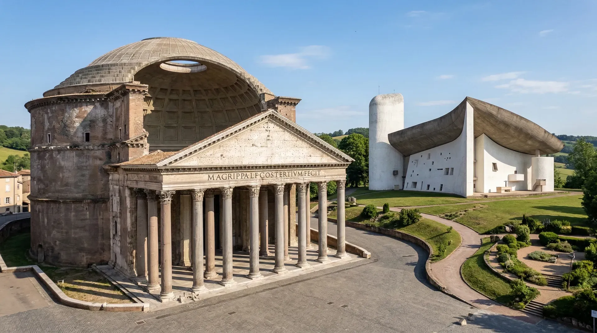 罗马万神庙是古典建筑体量设计的巅峰之作。这座建于公元2世纪的建筑,外部是一个简单的圆柱体体量,内部则是完美的半球形穹顶空间。穹顶直径43.3米,高度也是43.3米,形成了完美的球体空间。顶部的圆形开口直径9米,阳光从这里倾泻而下,在一天之中在球形空间内形成不断移动的光斑。这种几何形体的纯粹性和光线的戏剧性,完美诠释了体量设计的本质。
