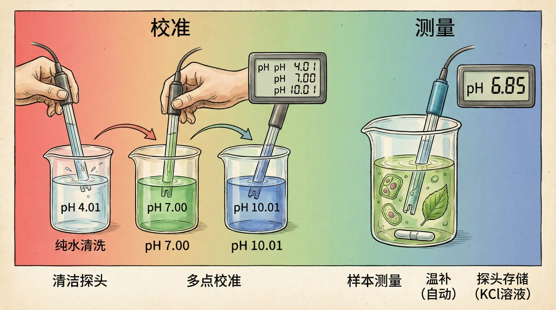 高精度pH测量离不开规范的操作流程和定期的仪器校准。多数实验室规程要求pH计每天使用前必须校准一次,至少每周完成一次校准。中国药典与ISO标准等权威规范,对校准过程均提出详细指引。其基本思路,是用pH值已知的标准缓冲液校对设备,使电极电位与真实pH形成可靠对应。