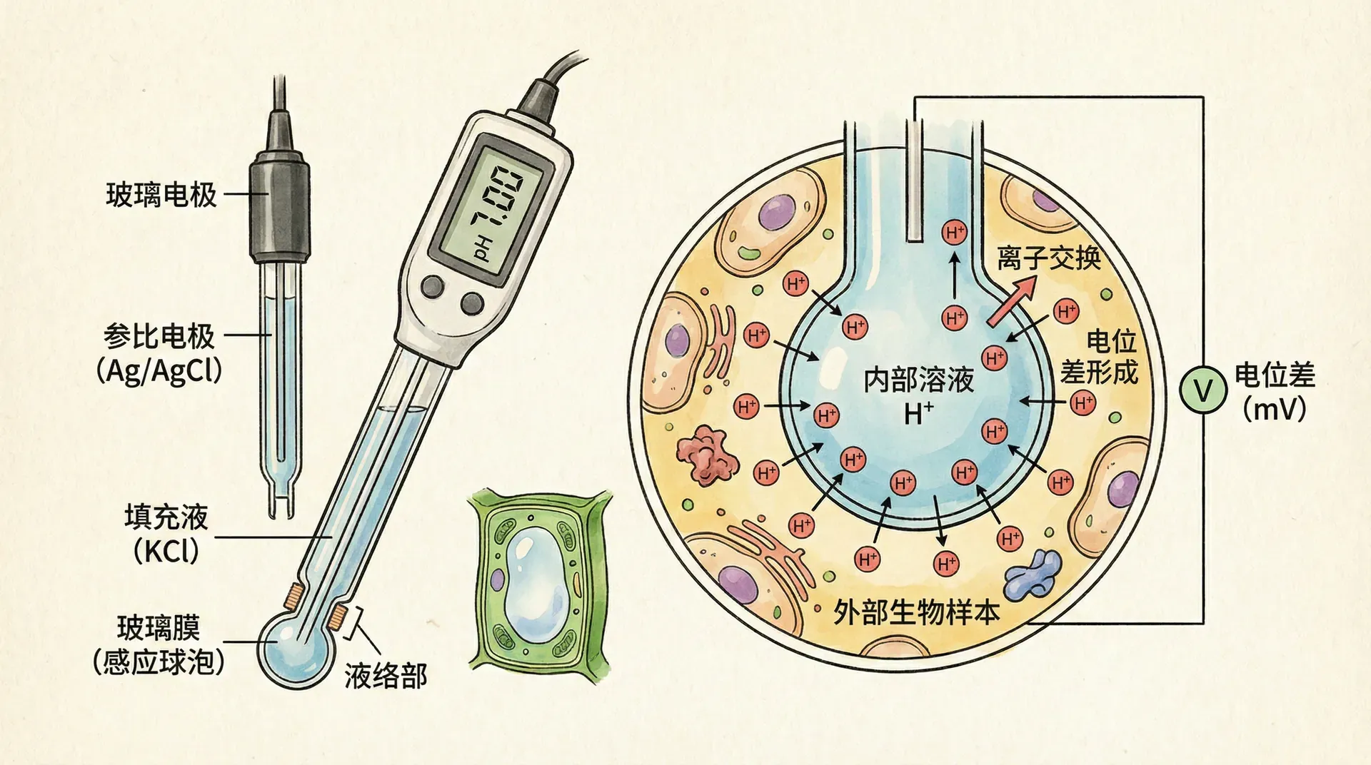 电子pH计是在实验室定量测量溶液pH的首选仪器。相较于指示剂法,pH计精度高(常见为±0.01 pH,部分高端型号可达±0.002),并且不受溶液本色或轻度混浊影响。理解其原理有助于精准使用与维护。