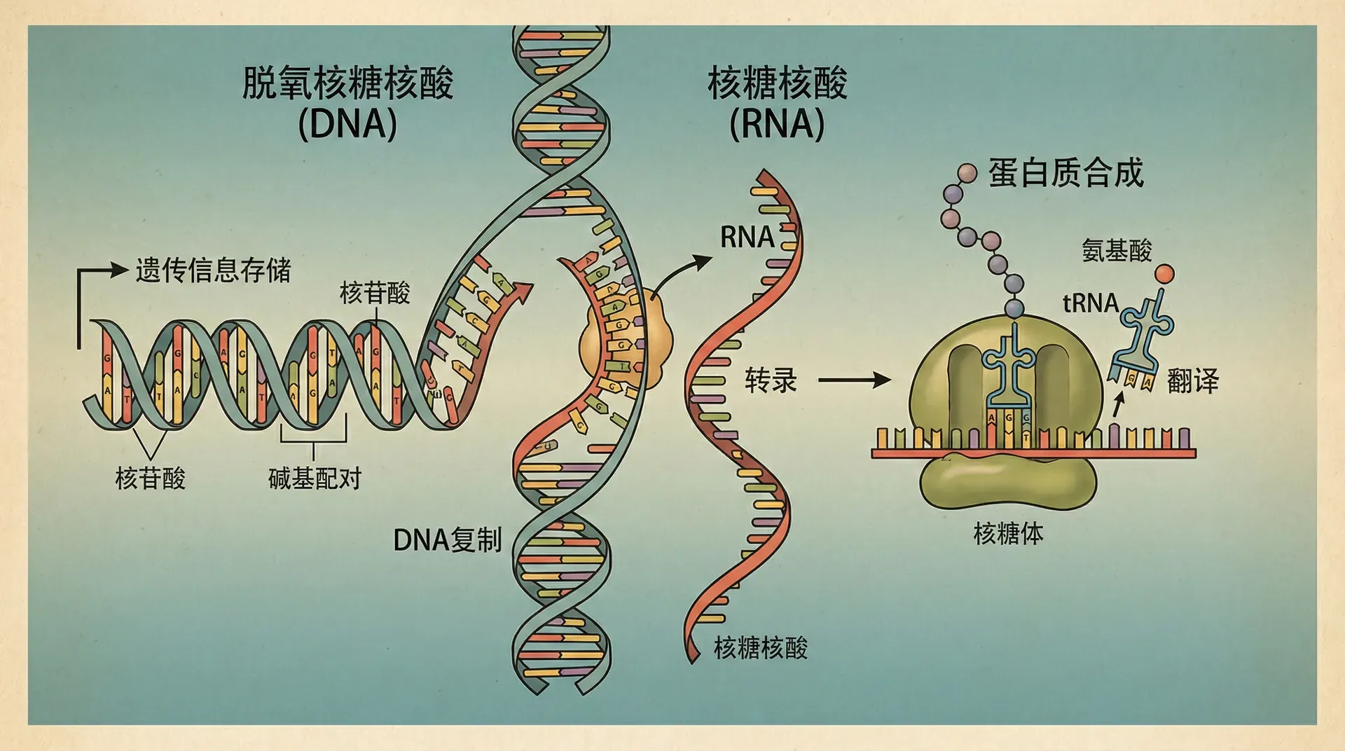 核酸作为遗传信息的核心载体,分为脱氧核糖核酸(DNA)和核糖核酸(RNA)。二者不仅在化学组成上不同,在结构和功能上也各具特色。