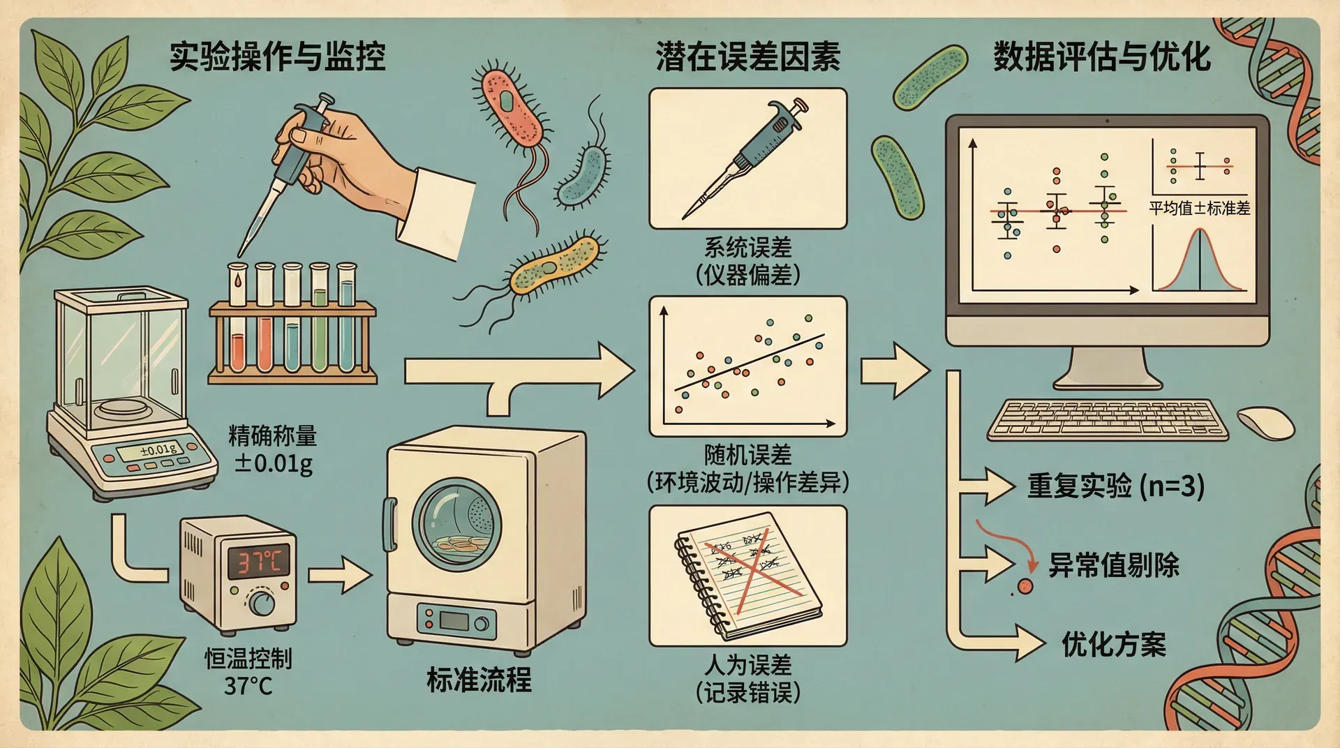 任何生物分析实验都难以做到绝对无误差,因此质量管理体系、误差分析和追踪至关重要。系统误差往往来源于仪器校准、标准溶液配置等实验硬件问题,表现为批次间数据趋势性偏高或偏低。随机误差则多因操作细节(如移液体积微小差异、环境条件)引发。