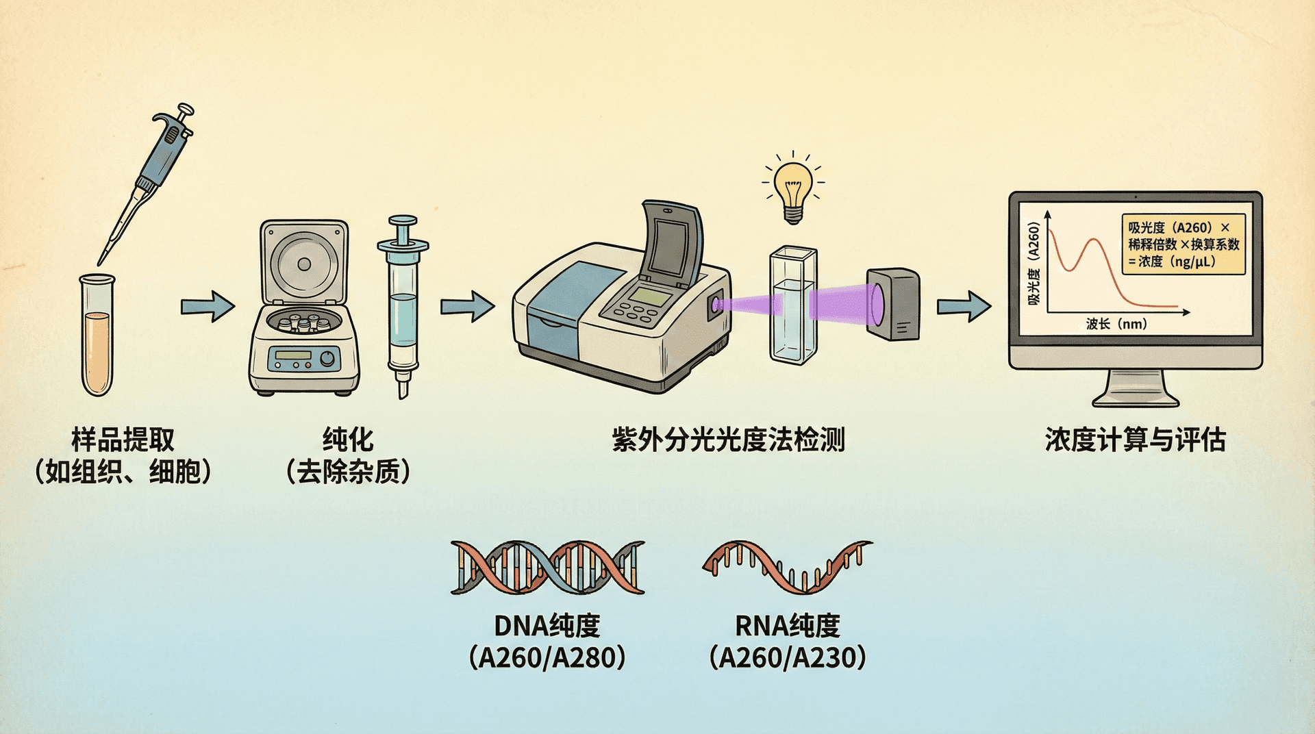 除了浓度,样品纯度同样关键。可通过A₂₆₀/A₂₈₀判断蛋白污染,A₂₆₀/A₂₃₀判断有机残留杂质: