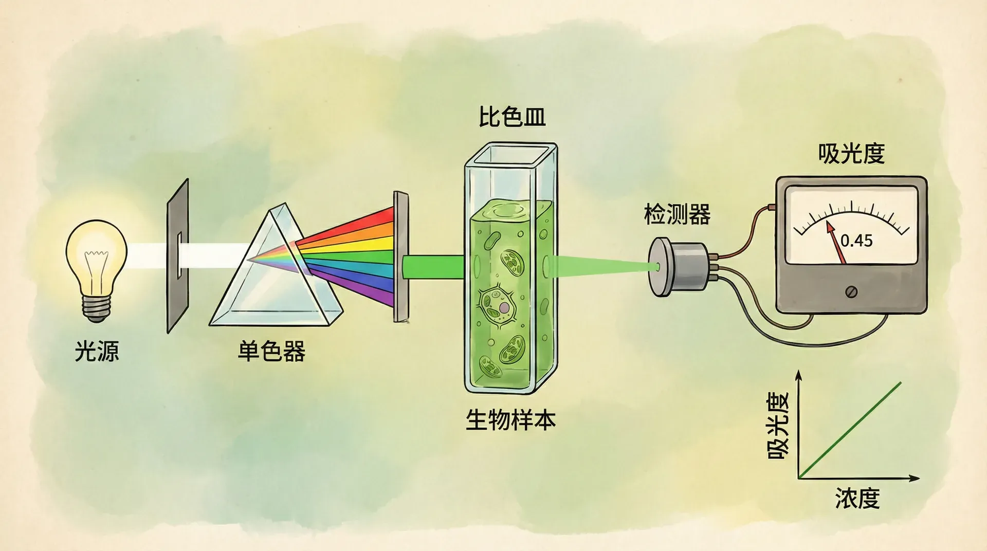 分光光度法作为生物实验室中最常用的分析技术之一,在生物学、化学、医学等多个领域都发挥着极为重要的作用。它利用物质对特定波长光的吸收特性,为我们提供了一种简便、快速且精确的方法来测定溶液中物质的浓度。无论是在日常的蛋白质浓度测定、核酸定量,还是在复杂的酶动力学分析和药物检测中,分光光度法都扮演着不可或缺的角色。举例来说,核酸和蛋白质的定量通常需要测量样品在特定波长(如260 nm和280 nm)下的吸光度,进而推算其浓度,这为分子生物学、基因工程等实验奠定了坚实的基础。