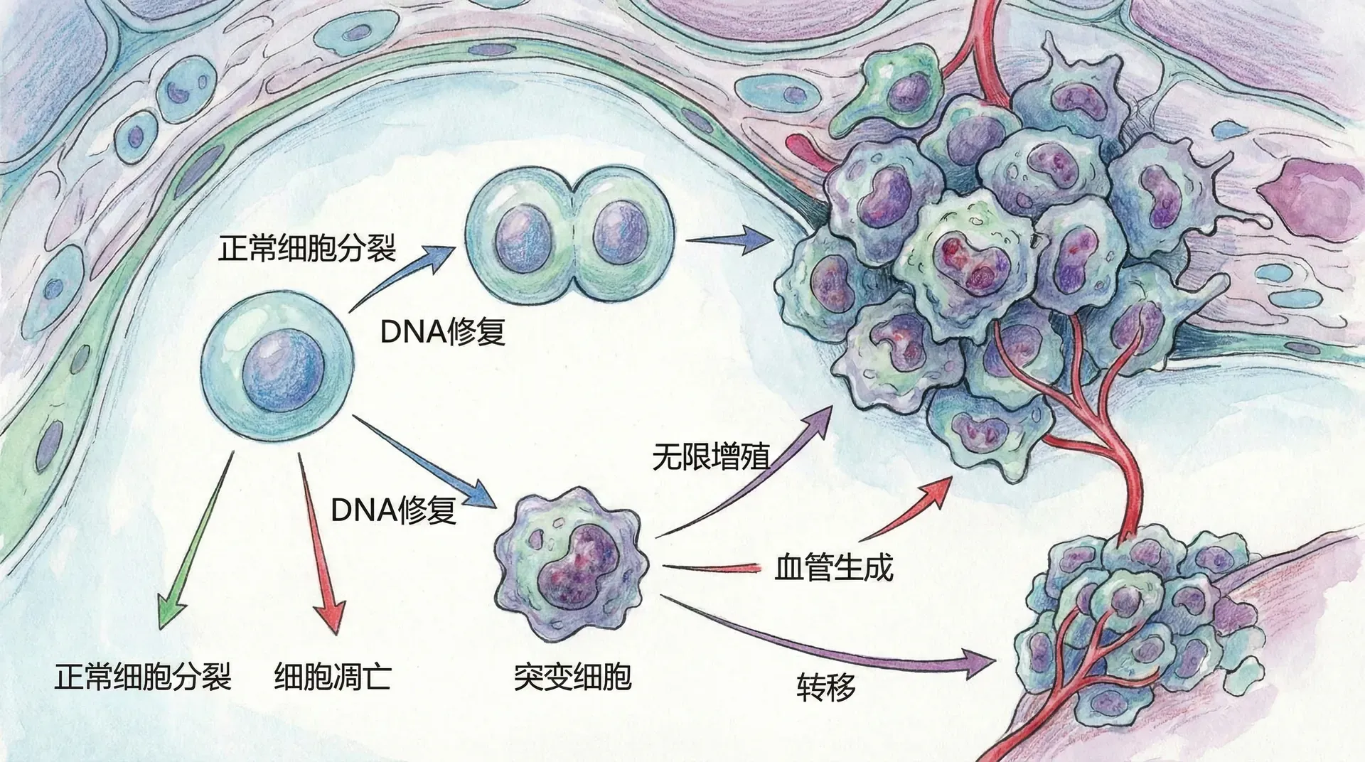癌症可以被视为生物体“自我管理系统”彻底失控的产物。原本严格受控的分裂流程和检查点机制在癌细胞中遭到破坏,导致细胞像“闯红灯”的车辆,无视所有信号灯警告,疯狂扩增。