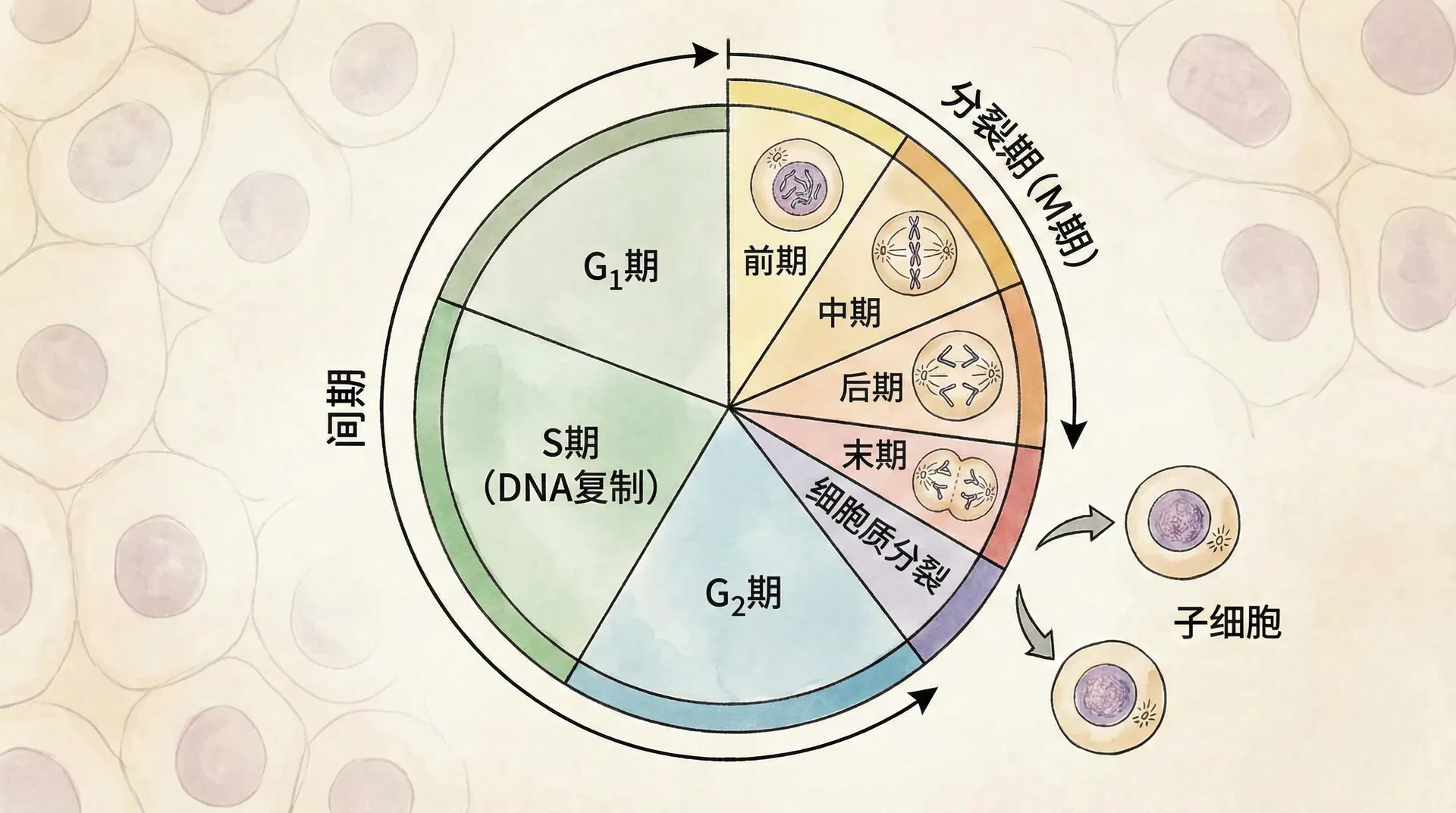 细胞周期是指细胞从上一次分裂完成起,经过生长、准备、再到下一次分裂发生为止的整个有规律的周期性变化过程。它包括了细胞的生长、DNA的复制、蛋白质的合成、细胞分裂等一系列连续的生命活动。就像是一台精密的生物钟,细胞严格地遵循一套“时间表”,有条不紊地完成各项任务。细胞周期的精确调控,是确保生命体正常发育、生长以及组织损伤修复的基础。