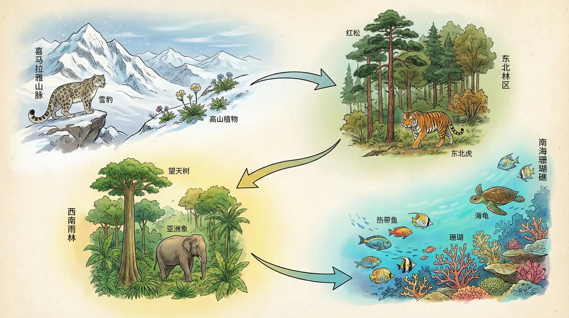 中国的地理环境为我们提供了观察这些模式的绝佳机会。喜马拉雅山脉和青藏高原的隆起就是一个巨大的地理分割事件。大约从5000万年前开始,印度板块与亚洲板块的碰撞造成了喜马拉雅山脉的抬升。这个过程不仅改变了亚洲的地形,也导致了许多物种的分化。