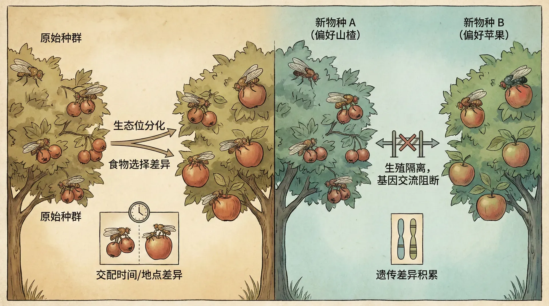 豆象的关键特征是“寄主忠诚”:雌虫倾向于在自己幼时取食的豆子上产卵。这就创造了一种自然的交配隔离机制。生长在绿豆上的豆象倾向于在绿豆上相遇和交配,而生长在赤豆上的豆象则在赤豆上交配。同时,适应不同寄主的基因也在起作用:适应绿豆的基因在赤豆上可能不那么有效,反之亦然。